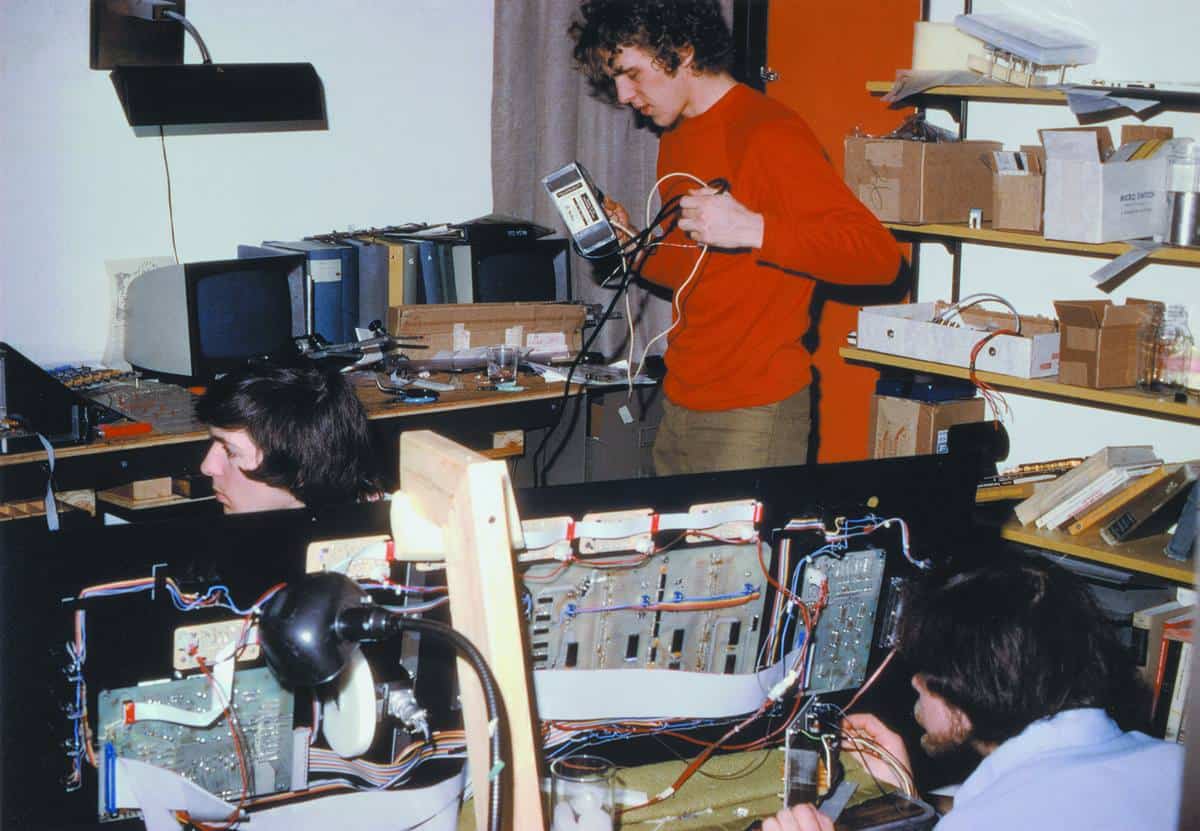 James Bradley oraz Fred i Bill Foster podczas pracy nad konsoletą Mega Cue, 1976 rok. (fot. ETC)