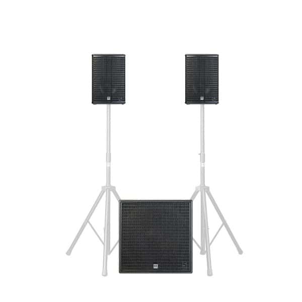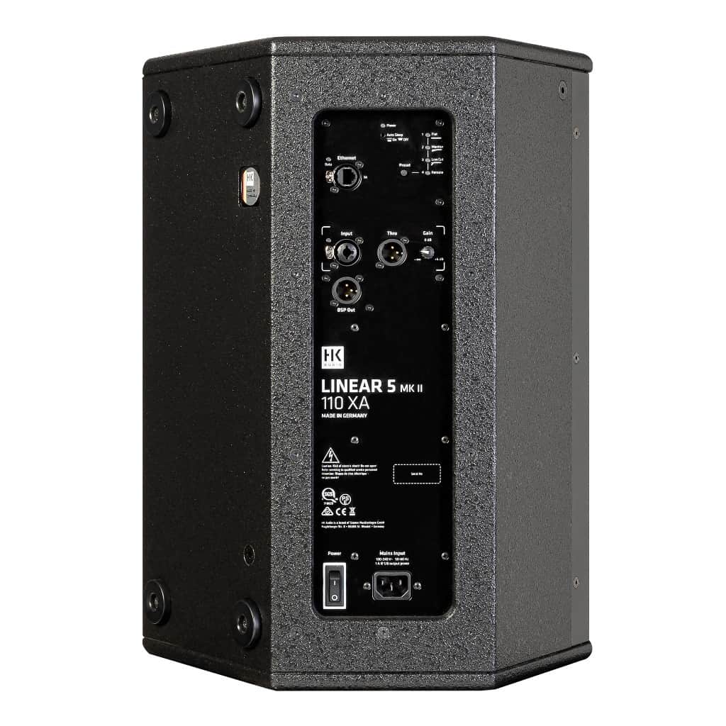 Gdy mowa o wymienionych wyżej modelach pełnozakresowych, oferują one bardzo dobre parametry dźwięku, przy zachowaniu kompaktowych rozmiarów – i tak na przykład maksymalny poziom SPL w przypadku 110 XA wynosi 120 dB, zaś pasmo przenoszenia pokrywa zakres od 68 Hz do 19 kHz (-10 dB, dla +/-3 dB jest to 74 Hz – 12 kHz). W przypadku 112 XA i FA maksymalny SPL wynosi 128 dB, zaś dla 115 XA i FA już 130 dB. pasmo przenoszenia dla -10 dB kończy się zawsze na 19 kHz, a zaczyna zależnie od modelu – od 68 Hz w przypadku 110 XA do 54 Hz w przypadku 115 FA. Maksymalny poziom wejściowy wynosi 20 dBu. Wszystkie mają takie same wzmacniacze klasy D o mocy 600 W (RMS) i szczytowej 1200 W. Wyposażono je w znakomity cyfrowy procesor DSP, dzięki którym możemy precyzyjnie dostroić cały system w zależności od potrzeb, a także optymalnie podnieść użyteczne ciśnienie akustyczne bez wprowadzania zniekształceń, czy sprzężeń. Jak już wspomnieliśmy, możliwa jest zarówno obsługa bezpośrednia – w samej kolumnie, ale także zdalna, poprzez łącze Ethernet i oprogramowanie DSP CONTROL (co oczywiście dotyczy też przywoływania zaprogramowanych ustawień). Dzięki temu możemy uzyskać idealny rezultat z każdego miejsca sali czy też dowolnej lokalizacji, bez potrzeby podchodzenia do konkretnego głośnika. Wspomniane oprogramowanie (dla przypomnienia – dostępne dla Windows i MacOS) daje nam zdalną kontrolę wszystkich komponentów systemu zbudowanego w oparciu o urządzenia HK Audio. Pokładowy DSP oferuje szereg przydatnych w każdej sytuacji algorytmów, jak 10-pasmowy korektor ze zmienną charakterystyką filtrowania, filtry górno, dolnoprzepustowe, polaryzację, opóźnienie, limiter, czy MUTE. Wszystko odbywa się z częstotliwością próbkowania 48 kHz, zaś latencja jest naprawdę minimalna (poniżej 2 ms). Kolumny pełnozakresowe wyposażone są w wejście analogowe typu combo (1 x XLR, symetryczne), analogowe wyjście XLR THRU oraz symetryczne XLR wyjście z procesora DSP. Ponadto wyposażono je w port sieciowy EtherCON RJ45.