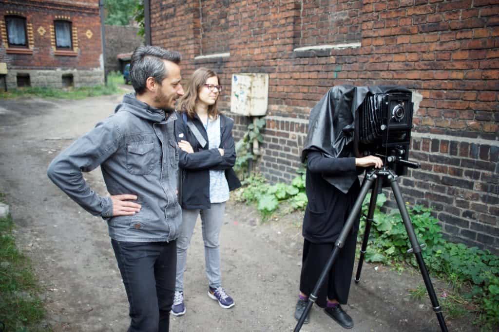 Rozmowa z fotografem, kontynuatorem idei Forum Fotografii Teatralnej Na pierwszym planie Bartłomiej Jan Sowa – plener w ramach Festiwalu Nowej Scenografii i FTT. fot. Grzegorz Kwolek Paweł Murlik: Czy mógłbyś powiedzieć co nieco o Forum Fotografii Teatralnej? Jak to się zaczęło?Bartłomiej Sowa: FFT zostało wymyślone przez Mariusza Stachowiaka, który był fotoreporterem, a poźniej fotografem teatralnym. Jego pomysł znalazł podatny grunt i pozytywny respons u Piotra Kruszczyńskiego, ówczesnego dyrektora Teatru Dramatycznego w Wałbrzychu. Pierwsza edycja odbyła się w Wałbrzychu w 2003 roku. Jestem poniekąd dzieckiem tego wydarzenia, gdyż zostałem zaproszony do wzięcia udziału w drugiej edycji jako uczestnik warsztatów, podczas których pod czujnym okiem Stachowiaka fotografowaliśmy spektakl „Czyż nie dobija się koni” Mai Kleczewskiej. Mariusz zgodnie ze swoim zamysłem przygotował zwariowaną wystawę naszych prac w górniczej łaźni łańcuszkowej. Moje zdjęcia zostały zauważone, dostałem pierwsze zlecenie od wałbrzyskiego teatru na fotografowanie spektakli. Później propozycje posypały się lawinowo. Zacząłem fotografować teatr i w rezultacie skupiłem się na tym całkowicie.Niestety, stało się tak, jak to się dzieje z każdym z nas… umieramy. Po odejściu Mariusza Stachowiaka nikt nie kontynuował idei FTT. Kiedy Piotr Kruszczyński został dyrektorem Teatru Nowego w Poznaniu, przedstawiłem mu pomysł reaktywacji tej imprezy. Spotkałem się, podobnie jak wcześniej Mariusz, z pozytywną odpowiedzią. Kolejna edycja po reaktywacji odbyła się już w Poznaniu. Przy okazji drugiej poznańskiej edycji w 2013 postanowiliśmy, że Mariusz Stachowiak zostanie patronem tej imprezy. fot. Grzegorz Kwolek Jak w takim razie FTT znalazło się w Katowicach?Adam Kowalski, szef Centrum Scenografii Polskiej, zaproponował mi współpracę. Zdecydowałem się na to, żeby zrobić kolejną edycję właśnie na Śląsku w CSP, które jest częścią Muzeum Śląskiego. Są tutaj olbrzymie możliwości, jeśli chodzi o pracę warsztatową i o miejsca ekspozycyjne, czego nie mieliśmy w teatrze. Oczywiście Teatr Nowy w Poznaniu jest znakomity! Ma trzy sceny, ale nie ma sal, które mogłyby służyć jako miejsca ekspozycyjne czy studyjne. Można powiedzieć, że twoja zawodowa przygoda z fotografią teatralną zaczęła się od FTT?Nie. Z fotografowaniem teatru miałem już do czynienia wcześniej. Myślę, że nie otrzymałbym zaproszenia do bardzo zamkniętej trzyosobowej grupy warsztatowiczów podczas drugiego FTT w Wałbrzychu, gdyby ktoś wcześniej nie widział moich zdjęć z teatru. Muszę jednak przyznać, że w tamtym okresie to były dla mnie rzeczy przypadkowe, ponieważ pracowałem jako fotoreporter w wrocławskiej redakcji Gazety Wyborczej. Zatem fotografowałem przysłowiowe dziury w drodze – śluby, wypadki, zawody sportowe, koncerty i tzw. główki polityków. Nie ukrywam: ciągnęło mnie do tego zawsze. Kiedy tylko miałem okazję zetknięcia się ze sceną, to było coś, co mnie naprawdę interesowało, a nie tylko obowiązek. fot. Grzegorz Kwolek Porozmawiajmy trochę o technice o i świetle: jaka jest różnica między pracą fotoreportera a kogoś, kto skupia się wyłącznie na fotografowaniu teatru?To się trochę zbiega. Zacząłem pracę fotoreportera w 1999 roku. Panował wtedy jeszcze etos tego zawodu. Pewnego rodzaju sznyt fotograficzny i etyczny, którego wtedy wszyscy z mojej redakcji starali się trzymać. Polegał on na tym, aby – na ile to jest możliwe – rejestrować, portretować, dokumentować, interpretować wydarzenia, nie ingerując w nie. To znaczy fotografować, starając się wykorzystać naturalne – autentyczne światło. Pracowałem w grupie ludzi, gdzie najwyższą wartością było to, aby fotograf przyniósł zdjęcie z tzw. światła zastanego, czyli tak, jak to wyglądało w rzeczywistości. Aby to wykonać, potrzebne są możliwie jasne obiektywy, czyli od 2,8 F w górę. Pamiętajmy o tym, że myśmy w tamtych czasach fotografowali na sprzęcie analogowym i posługiwaliśmy się negatywami kolorowymi.(…) W nawiązaniu do fotografii teatru. Kiedy ze swoimi doświadczeniami fotoreportera, ze swoją wrażliwością, sposobami na kadrowanie i budowanie kompozycji, ale również z umiejętnościami technicznymi pojawiłem się w teatrze, to… było to dosyć zaskakujące. Mam tu na myśli fakt, że teatr można fotografować dynamicznie, bez ograniczeń, bez pozowania, bez spowalniania akcji, czyli fotografując spektakl, łapać sytuację takimi, jakie one są. Ja nie czuję specjalnej różnicy, staram się łapać nastrój, kontekst, emocje. Różnica jest tylko taka, że w teatrze wszystko jest sztuczne. Wróćmy na chwilę do pracy fotoreportera. Szalenie ciekawi mnie wątek tego natłoku sprzętu – ogromnej liczby naświetlaczy do kamer czy to ledowych, czy to halogenowych. Setki rozbłysków z lamp twoich kolegów. Plus jeszcze światło zastane. Czy w takich warunkach można zrobić dobre zdjęcie?Pawle, właśnie cię złapałem! Nie słuchałeś mnie z należytą uwagą.Jeszcze raz podkreślę, że pracowałem w takich sytuacjach, nastawiając się na światło zastane, a wyglądało to mniej więcej tak: wyobraź sobie salę z świetlówkami przy suficie. Z prawej strony wpada światło dzienne. „Telewizory” z lewej świecą halogenami, a inni koledzy w to samo miejsce lampami błyskowymi, czyli miks. Aha… w aparacie materiał analogowy daylight. fot. Grzegorz Kwolek Tak, rozumiem… Nic dodać, nic ująć… Kunszt fotografowania i to o czym mówiłeś. Niespowalnianie akcji, a jednak uchwycenie tego czegoś. Ile z tego to warsztat, a ile wrodzona intuicja, a może talent? Czy można się tego nauczyć?Właśnie nie jestem w stanie tego zmierzyć… Mówię ci to jako osoba, która często prowadzi warsztaty z ludźmi na różnym poziomie fotograficznym. Oczywiście, móg