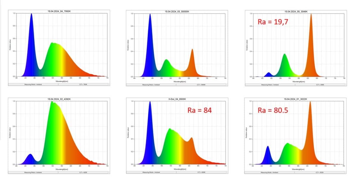 Sześciokolorowy chip daje już praktycznie pełne pokrycie zakresu fal światła widzialnego, a regulując natężenie poszczególnych struktur, możemy „odwzorować” światło słoneczne, żarowe, światło świecy i wiele innych charakterystycznych typów oświetlenia.