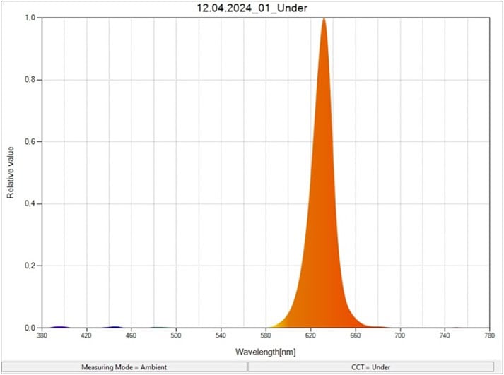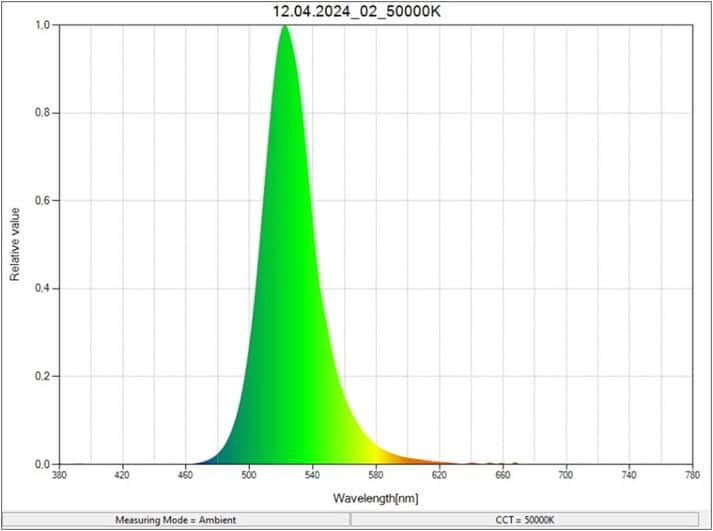 Diody świecą bardzo wąsko — jedną, konkretną długością fali. Typowe diody LED emitują fale o dominujących długościach: czerwona — 630 nm, zielona — 520 nm, niebieska — 450 nm. Kolor taki odbieramy jako żywy, nasycony i soczysty. Na pierwszy rzut oka wszystko wygląda świetnie: mamy bowiem idealnie „odfiltrowane” pasmo odpowiadające za dany kolor.