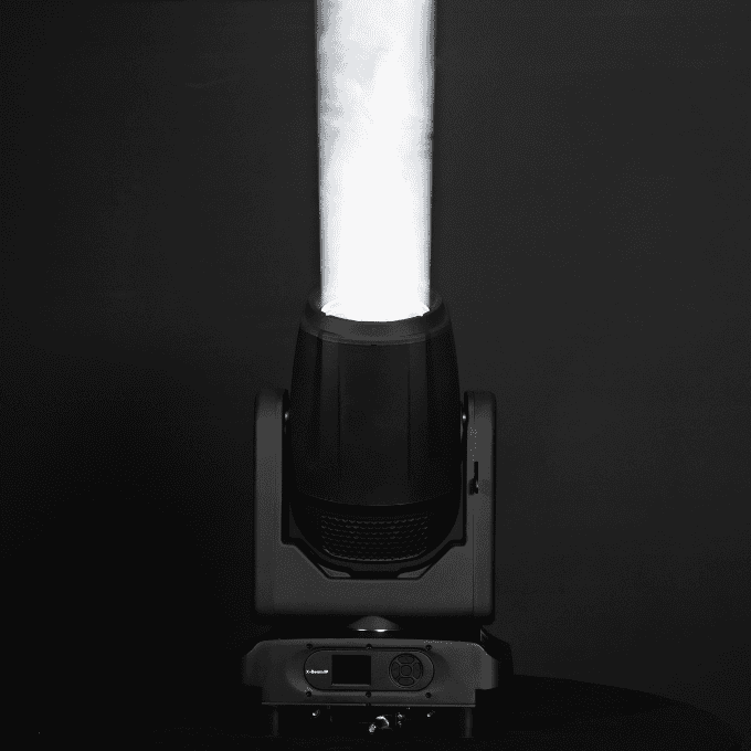 Tu zaskoczeniem nie będzie system mieszania barw. Przy takim źródle producent zaimplementował filtry CMY. Jednak to nie wszystkie rozwiązania związane z kolorami – urządzenie posiada też tarczę kolorów, na której znajduje się 12 filtrów. Niespodzianką może okazać się liczba statycznych wzorów gobo – jest ich aż 17. Oglądając inne oprawy oparte na laserowych źródłach światła od wewnątrz, mogę stwierdzić, że wąska wiązka w torze optycznym pozwala na zwiększenie liczby wzorów gobo w stosunku do głowic np. typu spot. W tego typu beamie nie mogło zabraknąć pryzmy – na pokładzie zamontowano dwie: jedną 8- i drugą 24-częściową. Co ciekawe – można ich używać równocześnie. W tej części z optyką znajduje się także filtr frost. Choć głowica jest szybka, to zdecydowano się na dość typowy, ale i wystarczający zakres pracy panoramy i tiltu – wynosi on dla płaszczyzny poziomej 540, a pionowej 270 stopni. Głowica została zaprojektowana dość elegancko i jest naprawdę niewielka – jej wymiary to 340 × 220 × 515 mm.