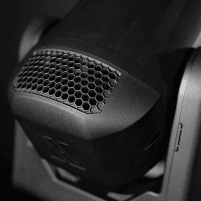 Oprawa została oparta na silniku, gdzie pod powłoką luminoforu kryje się źródło laserowe o mocy 120 W. W przypadku takiego źródła można sobie wyobrazić imponującą jasność generowaną z małej, kompaktowej głowicy. Żałuję, ale na tę chwilę nie dysponujemy jako redakcja dokładnymi danymi fotometrycznymi. Jako Muzyka i Technologia jesteśmy jednymi z niewielu, którzy mieli okazję przekonać się o imponujących osiągach tego urządzenia jeszcze przed premierą, gdy ostateczne rozwiązania były w fazie prototypowej. Jedno wiadomo na pewno – oprawa, według danych producenta, generuje 87 500 luksów w odległości 20 metrów przy wiązce skupionej do 1 stopnia. Tu pojawia się dość ważna informacja, dotycząca samego źródła. Należy sobie zdać sprawę, że głowice oparte na laserach dopiero zaczynają nabierać popularności i trudno tutaj wyrokować, jak będą zachowywały się te urządzenia po latach eksploatacji. Brighter deklaruje, że w przypadku swojego urządzenia żywotność źródła światła wynosi 12 000 godzin. Nie odbiega to więc znacząco od żywotności konwencjonalnych źródeł LED, ale – podobnie jak przy chipach LED – stanowczo przewyższa możliwości klasycznych lamp wyładowczych. Zwróciliśmy się do producenta z pytaniem odnośnie ewentualnej wymiany źródła światła. Odpowiedź brzmi: „koszt wymiany źródła nie będzie wyższy niż w przypadku urządzeń z silnikami LED”. Dalej muszę się podzielić jedynie moimi odczuciami, których doświadczyłem na własne oczy, analizując również materiały wizualne. Zatem – tak! Mogę potwierdzić, że zestawienie X Beama z teoretycznie porównywalnymi oprawami przemawia zdecydowanie na korzyść Brightera, co można było ocenić gołym okiem. Oprawa okazała się szybsza i jaśniejsza. Wynika to z faktu, że pomimo klasy szczelności udało się dość mocno „odchudzić” urządzenie – oprawa waży jedynie 14 kg.