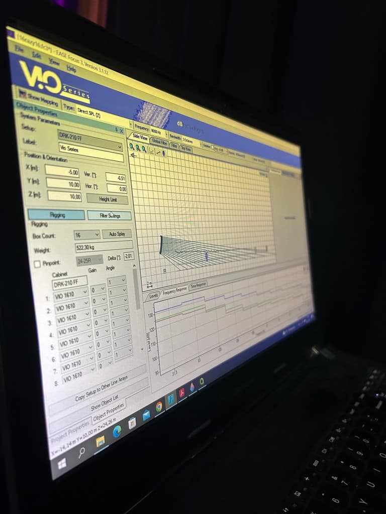 Przejdźmy teraz do głównego bohatera całego wydarzenia. dBTechnologies VIO L1610 to trójdrożny aktywny system line array, w całości wyposażony w komponenty neodymowe. Sekcja LF to dwa 10″ głośniki niskotonowe z 2,5″ cewką, zapewniające rozszerzoną reprodukcję niskich częstotliwości. W sekcji MF pracuje 4″ przetwornik szerokopasmowy z 2,5″ cewką. Za przetwarzanie wysokich częstotliwości odpowiada zamontowany współosiowo w specjalnie zaprojektowanym falowodzie ciśnieniowy driver z wylotem 1,4″. Symetryczna konstrukcja zapewnia najdokładniejszą reprodukcję transjentów, dzięki czemu VIO L1610 charakteryzuje się szczegółowym i jednorodnym brzmieniem. W rzeczywistości pozwala to nie tylko na rozszerzoną reprodukcję niskiego pasma w sekcji MF, ale gwarantuje doskonałą spójność poza osią wraz ze wszystkimi korzyściami płynącymi z bezpośredniego promieniowania głośników niskotonowych, co znacznie zwiększa wydajność systemu.