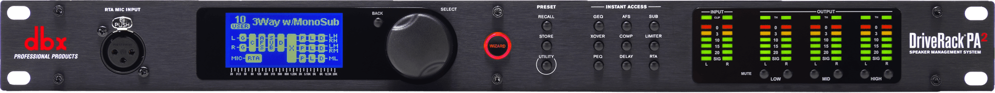 Oferta marki dbx została rozszerzona o nowy system do zarządzania systemem nagłośnieniowym. DriveRack PA2 zapewnia praktycznie wszystkie niezbędne bloki przetwarzania sygnału potrzebne pomiędzy mikserem a wzmacniaczem żeby zoptymalizować pracę systemu i chronić głośniki. Mamy do dyspozycji opatentowane przez dbx AutoEQ, algorytmy AFS ( Advanced Feedback Suppression) , nowy moduł do opóźniania sygnałów wejściowych, kontrola poprzez Ethernet (dla urządzeń z systemem Android, iOS, Mac lub Windows) oraz ulepszoną i prostszą konfigurację.Nowy ulepszony algorytm AutoEQ zapewnia szybką i niezwykle dokładną korekcję. Mikrofon „nasłuchujący” sygnały w czasie rzeczywistym automatycznie ustawia poziomy głośników i koryguje odpowiedź częstotliwościową w czasie dosłownie kilku sekund. Teraz strojenie systemu może przebiegać znacznie szybciej, bez konieczności długotrwałego generowania męczącego w słuchaniu szumu różowego.Algorytm eliminacji sprzężeń AFS również został dopracowany. Działa teraz jeszcze szybciej i precyzyjniej.Wśród dostępnych opcji przetwarzania sygnałów mamy ponadto opatentowaną kompresję dbx, korektor graficzny, sbx Subharmonic Synthesis, dbx-owy limiter, crossover oraz wyrównanie czasowe głośników.