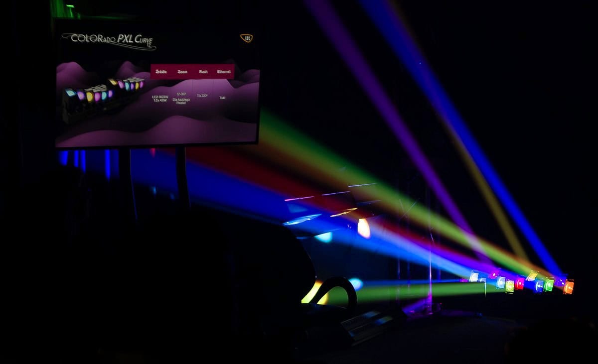 Ostatnią prezentowaną nowością był COLORado PXL Curve 12 – listwa LED składająca się z 12 niezależnych źródeł światła. Każda dioda ma indywidualną regulację dimmera, koloru, tiltu oraz zoomu, co pozwala na tworzenie zarówno efektów fali, promieni świetlnych, jak i szerokiego, jednolitego oświetlenia scenicznego. Urządzenie wyróżnia się płynną regulacją zoomu, co otwiera zupełnie nowe możliwości dla kreatywnych light designerów i realizatorów oświetlenia.