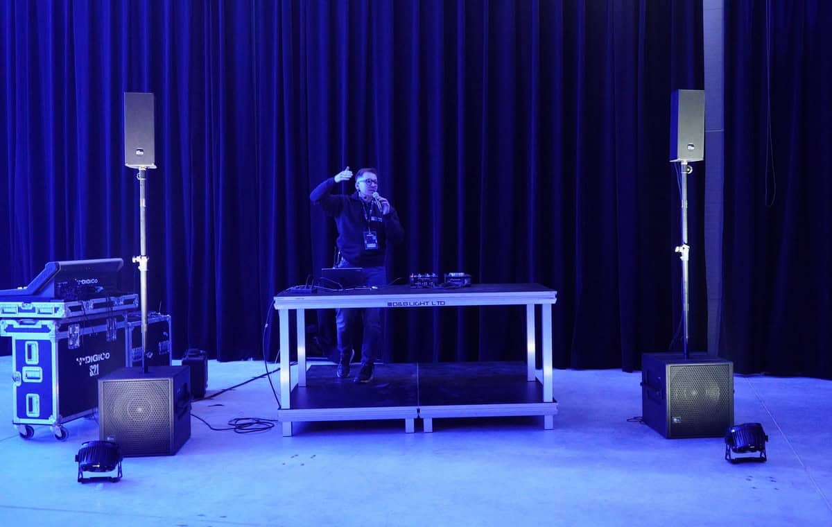 Ostatnia scena została przygotowana dla głównego bohatera spotkania — najnowszego i największego modelu ULTRA-X80, który redefiniuje możliwości technologii point-source. Tu system nagłośnieniowy składał się z dwóch głośników X80 oraz czterech subwooferów 2100-LFC. Goście mieli okazję posłuchać gotowych utworów, a także własnych nagrań. Dodatkowo, pokaz możliwości — zarówno swoich, jak i systemu Meyer Sound — dał na żywo perkusista Łukasz „Łamek” Szafrański. Zanim jednak przystąpiliśmy do odsłuchów, organizatorzy zorganizowali konkurs polegający na zawieszeniu i podłączeniu prezentowanego systemu. Szybka akcja — typowy scenariusz znany z wielu realizacji. Ekipa techniczna, wyłoniona spośród gości, poradziła sobie w niecałe 8 minut, bijąc tym samym rekord z pierwszej tury. Takie brzmienie w 8 minut? Chapeau bas, Meyer Sound!
