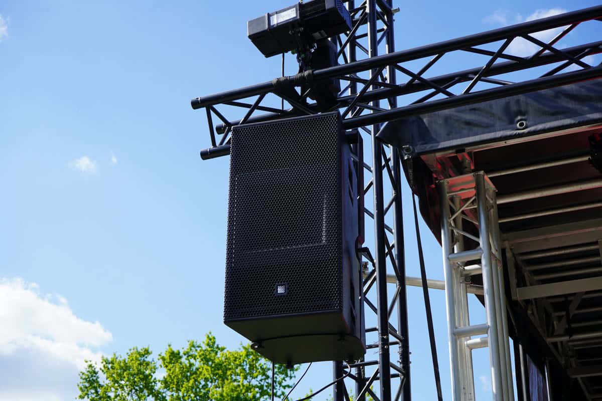 Kolejna scena została rozstawiona w plenerze. Tu goście mieli możliwość przetestowania zestawu w konfiguracji 2 × ULTRA-X40 i 2 × 900-LFC. Model X40 wyposażony jest w dwa 8-calowe przetworniki, ulokowane — podobnie jak w innych modelach z tej serii — w górnej i dolnej części obudowy. Pośrodku znajdziemy 3-calowy driver połączony z obrotową tubą, zapewniający kąt propagacji 110 × 50 stopni. Głośnik napędzany jest 3-kanałowym wzmacniaczem klasy D, który osiąga szczytową moc 1950 W. Debiutujący wraz z systemem LEOPARD subwoofer 900-LFC to konstrukcja oparta na jednym przetworniku 18-calowym, pracująca w zakresie od 31 do 125 Hz. Świetnie sprawdza się w połączeniu z X40.