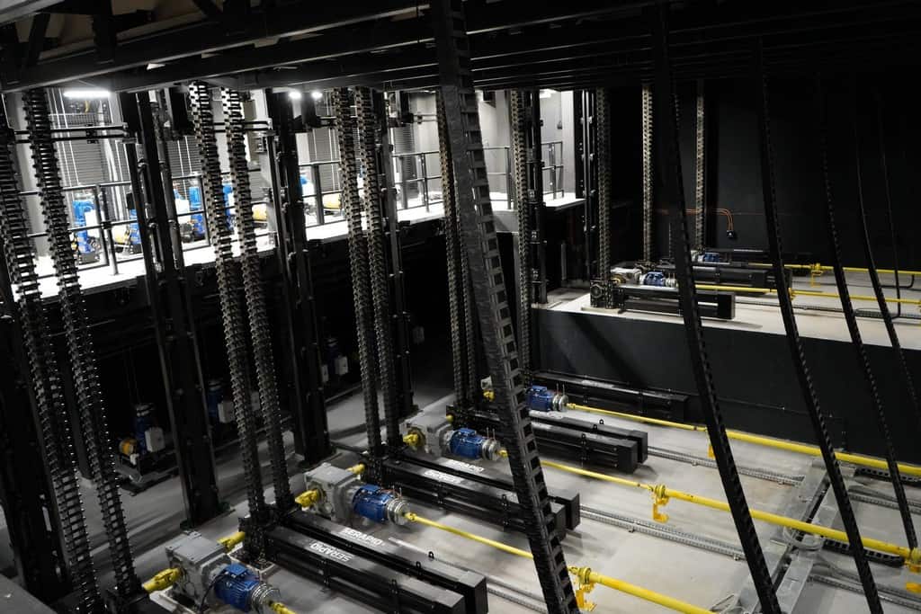 Na Dużej Scenie zainstalowano łącznie prawie 80 urządzeń mechanicznych, w tym: