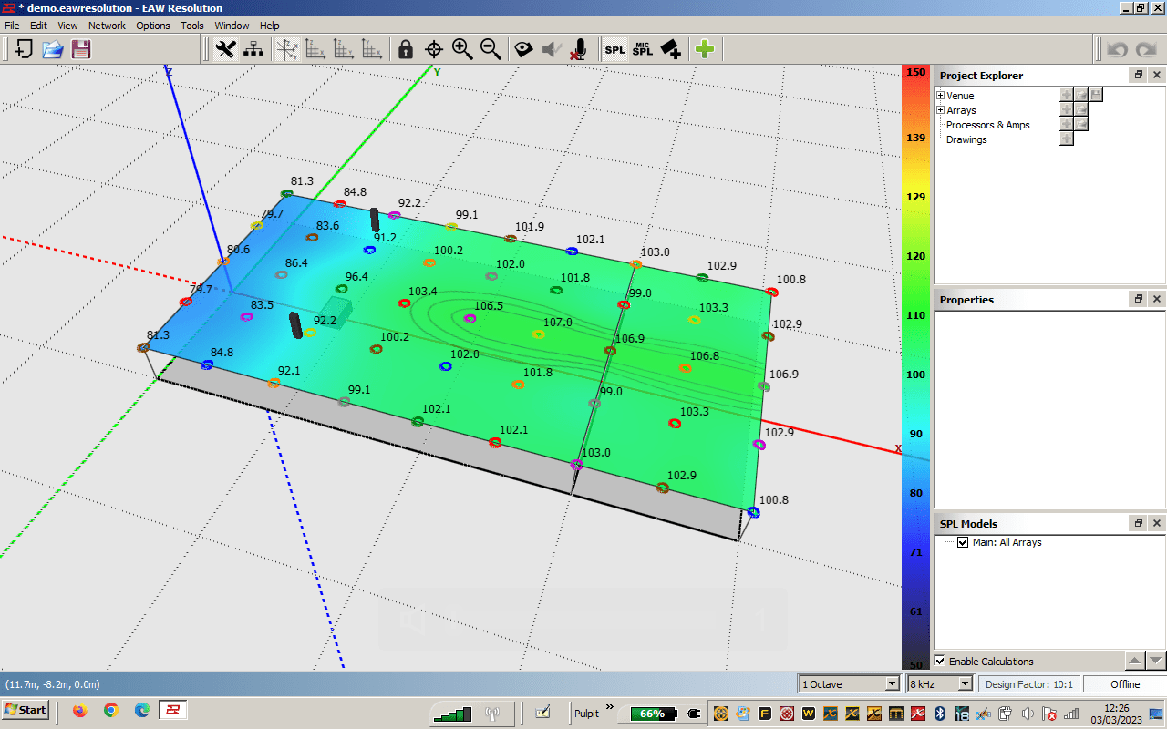 Na tym praktycznie kończy się kwestia wstępnej konfiguracji nagłośnienia. „Spatial View” stanowi podstawowy podgląd poszczególnych punktów pomieszczenia z informacjami na temat jego zagospodarowania dźwiękiem. Na dalszym etapie, praca pokrywa się z klasycznym podejściem „na ucho”, aby wychwycić częstotliwości, które w danej przestrzeni mogą okazać się problematyczne lub kluczowe w kontekście dalszej realizacji (wiele zależy od materiałów ścian czy też sufitu oraz ich kształtu). Resolution pozwala na monitoring pracy poszczególnych przetworników oraz dokonywanie korekcji. To od użytkownika zależy, czy faktycznie z wbudowanych tam algorytmów skorzysta, czy jednak będzie chciał przenieść się np. do korektora sumy konsolety. W trakcie testów, już po paru chwilach od wprowadzenia wymiarów, AC6 bardzo równomiernie pokrył sekcję oznaczoną w programie jako miejsce widowni. Nie było potrzeby dokonywania ponownych przeliczeń i korekt, a główną zasługą tego stanu rzeczy jest pełna automatyzacja dokonywanych obliczeń. System już na pierwszy rzut ucha zasługuje na miano koncertowego, oferując bardzo dobrą jakość i dynamikę. Oczywiście, muzyka wymaga użycia subwooferów, ale AC6 zaskakuje wystarczającą ilością niskiego środka względem górnego pasma, dzięki czemu bez obaw stanowić może główną siłę nagłośnieniową podczas koncertów zarówno jako mobilne rozwiązanie, jak też instalacja.