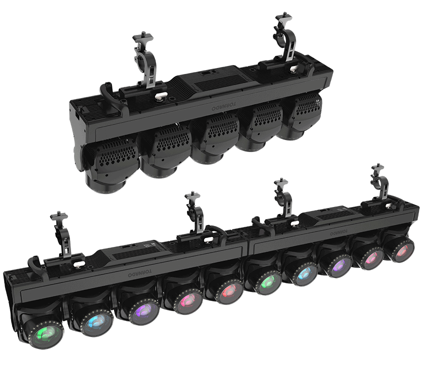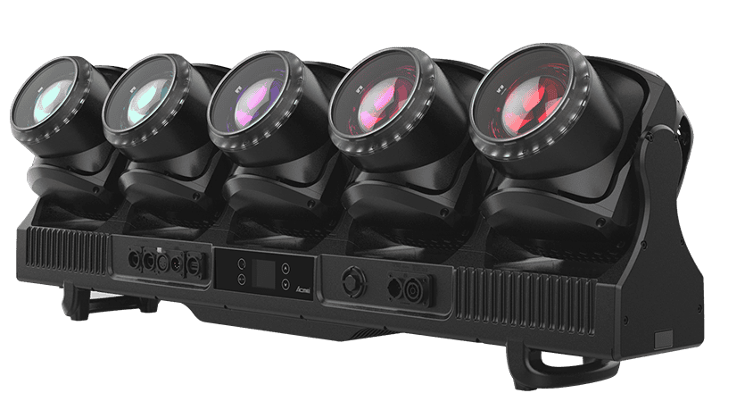 Acme Tornado to ruchoma głowica wyposażona w pięć źródeł światła 120 W RGBL LED, uzupełnionych pierścieniem 120 diod RGB (0,5 W). Każda z pięciu głowic może być sterowana niezależnie, z pełną kontrolą ruchu w osi pan i tilt, co daje ogromne możliwości programowania oraz pozwala budować efektowne, złożone układy świetlne.