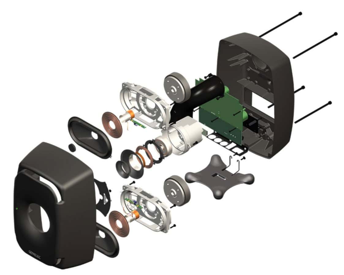 Dwa woofery są ukryte w obudowie w sposób, który eliminuje dyfrakcję i poprawia charakterystykę kierunkową monitora, jednocześnie zapewniając głębokie i kontrolowane pasmo niskich częstotliwości. Symetrycznie umieszczone woofery mają wspólną oś akustyczną z zespołem wysoko- i średniotonowym.