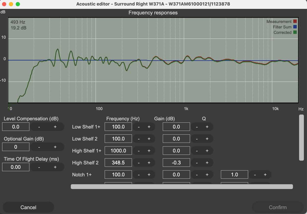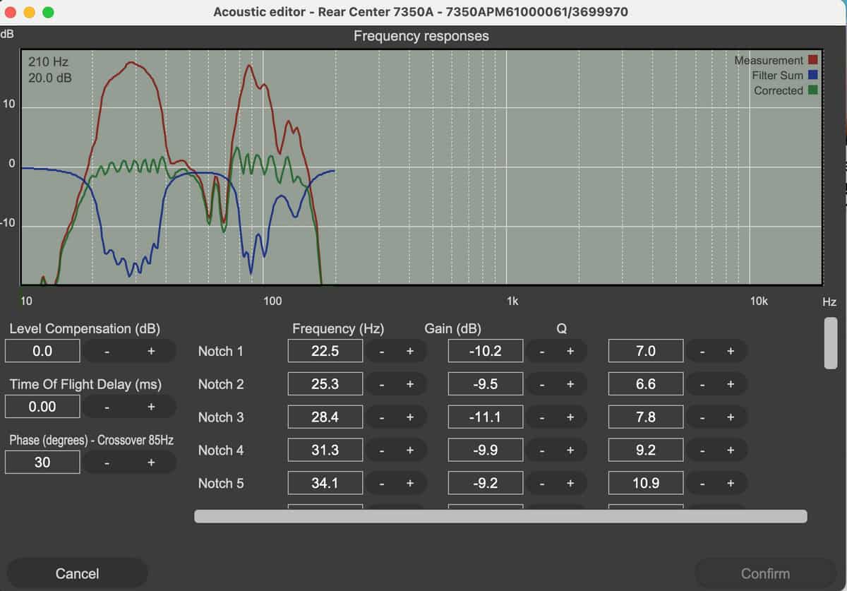 - automatycznie dostosowuje ustawienia korekcji częstotliwościowej oraz opóźnień czasowych w procesorze DSP każdego monitora;