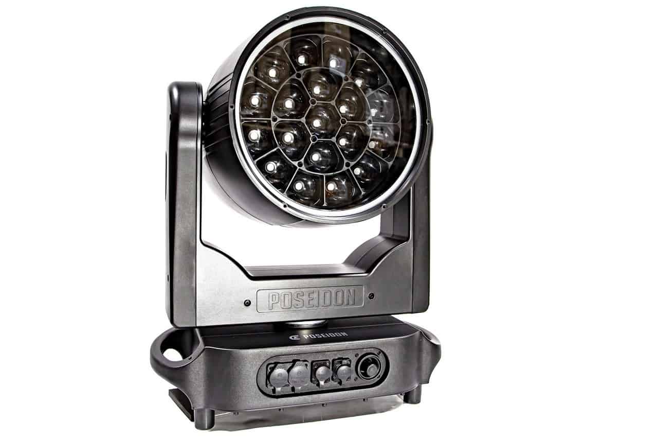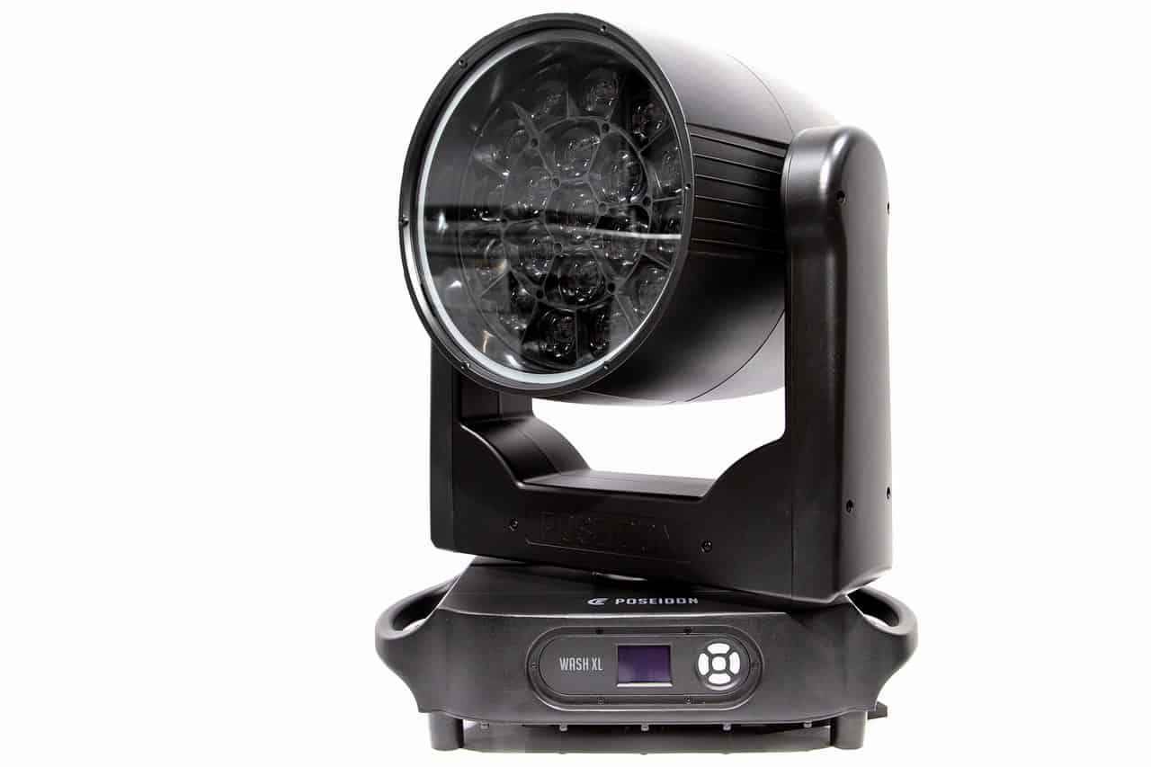Poseidon Wash XL jest kompletnym rozwiązaniem skierowanym do rynku rentalowego i eventowego. Jego serce stanowi 19 diod Led RGBW o mocy 30 W każda, choć dzięki zastosowaniu odpowiedniej optyki można mieć nieodparte wrażenie, iż mamy tu do czynienia ze znacznie mocniejszymi źródłami światła. Oprócz wspominanych diod do dyspozycji mamy także zewnętrzny ring SMD LED RGB umożliwiający uzyskanie dodatkowych efektów typu HALO. Oprawa została wyposażona w szybki zoom elektroniczny pracujący w zakresie od 5 do 60 stopni oraz klasę szczelności IP65. Możliwości efektowe urządzenia oraz jego wartość podnosi fakt zastosowania ruchomego systemu soczewek ( efekt kalejdoskopu ) niespotykanego do tej pory w tej klasie urządzeń.