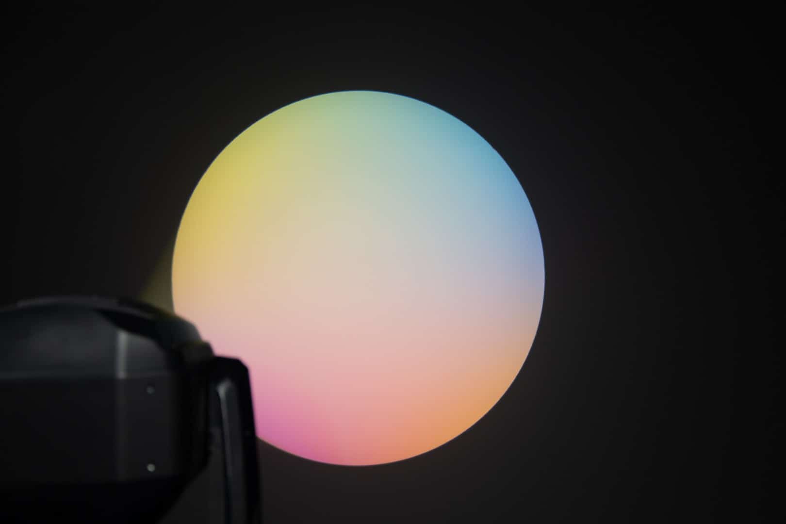 Rzeczywiście ciekawie został rozwiązany system kolorów. Z pozoru niewiele się zmieniło, ponieważ głowica została wyposażona w klasycznie przesuwane z obu stron w strumień świetlny filtry CMY. Ich kształt jest chyba wszystkim znany, czyli można zaobserwować charakterystyczne półksiężycowe wycięcia, które to mają zwiększyć wrażenie stopniowego nasycania wiązki danym kolorem. Zastosowano też klasyczny napęd z użyciem pasków. Tu nie ma niespodzianek. Wiele urządzeń ROBE ma właśnie takie rozwiązanie. Nie ma też żadnego nowego odkrycia w przypadku filtru CTO. Został on umieszczony w tej samej sekcji, gdzie filtry barwne CMY. Zasada stopniowego używania CTO mechanicznie jest realizowana dokładnie tak samo, jak w przypadku filtrów barwnych. Ale pewnym zaskoczeniem jest dla mnie podwójna tarcza kolorów. Pierwsza z nich zawiera filtry, które uzupełniają właściwie wszystko, co czasem jest trudne do uzyskania, mieszając barwy metodą CMY. Mam tu na myśli np. głęboko nasyconą czerwień. Tarcza zawiera również głęboki odcień koloru niebieskiego, orange, zieleń oraz popularny ostatnio congo blue. Co zatem umieszczono na drugiej tarczy? Ciekawostkę stanowi część, którą nazwano multicolor. Jest to właściwie zlepek kilku kolorów płynnie przenikających się nawzajem. Daje to dość ciekawy efekt, szczególnie przy użyciu elementów animacyjnych. Na tarczy znalazłem też jeden z moich ulubionych kolorów, który często wykorzystuję, używając np. w urządzeniach typu wash wszystkich diod RGBW w jednym czasie. Widać ten pomysł nie tylko mi przypadł do gustu, skoro producent umieścił właśnie taki kolor na tarczy pod nazwą lavender. Tarcza zawiera też dość specyficzny kolor typu laser green, a także dwa filtry odcinające nieco pasmo niebieskie w całym widmie. Mają one za zadanie podwyższenie wyniku CRI. Czy to wszystkie możliwości dotyczące pracy z kolorami? Niezupełnie. W bibliotece znajdziemy sekcję virtual color. Tu umieszczono odwzorowanie klasycznych, żelowych filtrów wraz z naniesionymi numerami katalogowymi. Odwzorowanie wspomnianych filtrów jest realizowane za pomocą sekcji CMY. Dla mnie osobiście będzie ważny jeszcze jeden element dotyczący kolorystyki i widma. Czyli możliwość odejmowania lub dodawania zieleni. W oprogramowaniu istnieje sekcja green shift. Odchylenie zieleni można indeksować w dowolny sposób. Ta funkcja również jest realizowana z pomocą sekcji CMY. W niektórych głowicach od jakiegoś czasu mamy do czynienia z nowym elementem. To dodatkowa soczewka skupiająca, umieszczona zaraz za filtrami CMY. Przy tak dużej średnicy źródła światła podejrzewam, że jest ona konieczna. Z pewnością ten element ma również wpływ na równomierne rozkładanie koloru w plamie oświetleniowej – bez żadnych, nawet najmniejszych przebarwień, o czym już wspominałem.