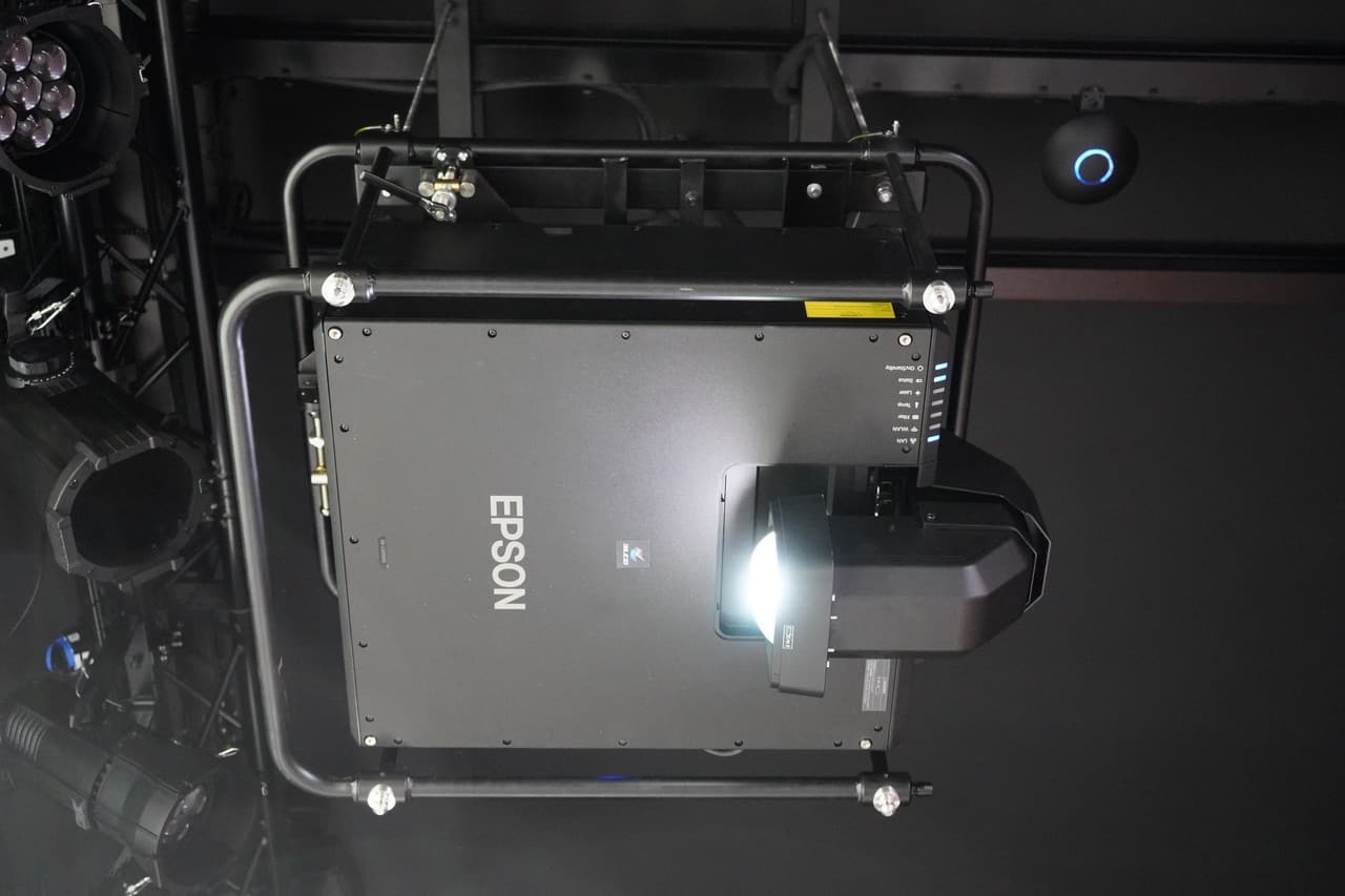 Do wyświetlania filmów lub innych obrazów wykorzystywany jest projektor 3LCD o jasności 12 000 lumenów i natywnej rozdzielczości 4K – Epson EB-L12000Q. Dodatkowo jest on wyposażóny w obiektyw o ultrakrótkiej ogniskowej Epson ELPLX02, idelanie dostosowany do miejsc o ograniczonej przestrzeni. Warto dodać, że zainstalowany projektor to pierwszy egzemplarz w Polsce!