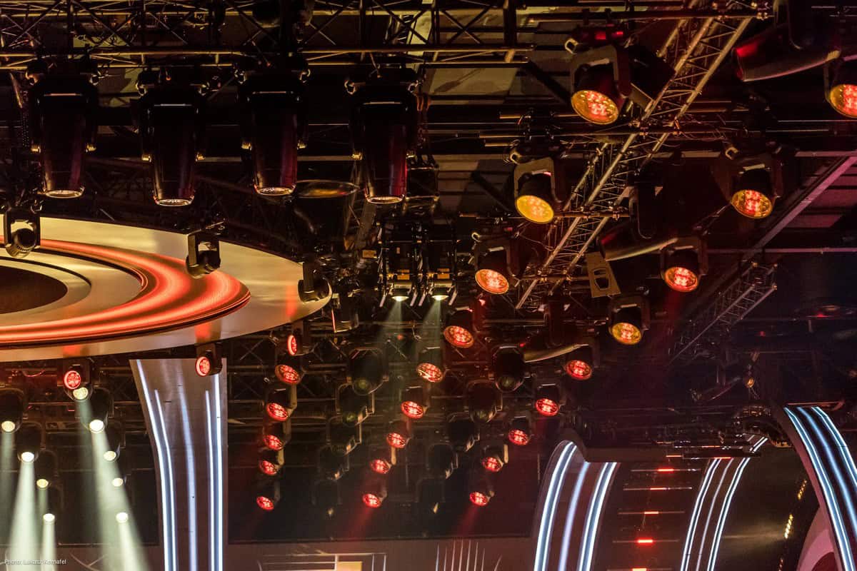 Pierwszym elementem, który natychmiast rzuca się w oczy gdy tylko pojawia się studio jest potężna bateria lamp zainstalowana nad orkiestrą. Jest to imponujący zestaw opraw Ayrton Khamsin-S i Maverick Storm 2 BeamWash. Świecą one jako kontra na parkiet i przede wszystkim pełnią funkcje efektowe. W tej sekcji zainstalowane zostały również oprawy Robe Robin LEDWash 800 oświetlające orkiestrę. Dookoła parkietu, na konstrukcji znajdującej się na nim zainstalowano kolejny zestaw lamp CHAUVET Professional Maverick Storm 2 BeamWash, Robe Robin LEDWash 800, a także Robe iForte z których w zależności od ustawienia, świecona jest ekspozycja lub kontra. Nad parkietem, na jednej konstrukcji zainstalowano również zestaw trzynastu opraw Robe Robin iForte pełniących funkcje efektowe. Ponadto w scenografię wkomponowane zostały oprawy Claypaky Tambora Linear, Robert Juliat Dalis 862 i legendarne już lampy ze źródłem halogenowym Chromlech Jarag-L. Część urządzeń została również ustawiona na podłodze, w przestrzeni studia. Mowa tutaj m.in. o dużych urządzeniach Ayrton Huracan Profile.
