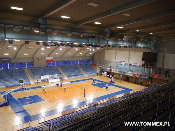 Hala Widowiskowo-Sportowa Centrum w Dąbrowie Górniczej to nowoczesny obiekt mogący pomieścić ponad trzy tysiące widzów. Powierzchnia areny sportowej (1900 m2) pozwala na jednoczesne rozłożenie trzech boisk do siatkówki. W 2015 roku obiekt poddano modernizacji, w wyniku której wymieniono dotychczasowy system nagłośnienia oraz dźwiękowy system ostrzegawczy. Nowy system nagłośnienia hali Centrum to system wielofunkcyjny, w którym priorytet pełni Dźwiękowy System Ostrzegawczy (DSO). Oprócz głównej funkcji, mającej na celu sprawną ewakuację w przypadku zagrożenia, na co dzień nagłośnienie służy do obsługi imprez sportowych oraz występów scenicznych.Głównym punktem systemu jest centrala APS-Aprosys, produkcji szwajcarskiej firmy g+m elektronik; zainstalowano ją w specjalnie przygotowanym pomieszczeniu. W jej skład wchodzą między innymi: jeden wzmacniacz BO-CD-250EV, osiem wzmacniaczy BO-CD-250-2EV, dziewięć wzmacniaczy BO-CD-500EV, dwa wzmacniacze BO-CD-150EV oraz moduły APS dopasowane do potrzeb ewakuacyjnych obiektu. W szafie teletechnicznej zainstalowano matrycę Dynacord P64 wyposażoną w wejścia AES/EBU. Jej zadaniem jest podział sygnału jego przygotowanie w procesorze DSP i transmisja do wzmacniaczy mocy. Komunikacja między źródłem sygnału zlokalizowanym na stanowisku komentatora a matrycą zainstalowaną w amplifikatorni DSO odbywa się w pełni cyfrowo za pośrednictwem światłowodu FiberPlex z wyjściami AES/EBU. Cały system pracuje w sieci IRIS-Net, co umożliwia stałą kontrolę i monitorowanie stanu wszystkich urządzeń. Nagłośnienie hali – część komercyjnaNagłośnienie komercyjne Hali Widowiskowo-Sportowej Centrum bazuje na dwudziestu zestawach głośnikowych Community R2: jedenastu egzemplarzach R2-94TZ-EN, sześciu R2-77TZ-EN oraz trzech R2-52TZ-EN. Community R2 charakteryzują się wysokim współczynnikiem kierunkowości (Q>37), który odgrywa decydującą rolę w zakresie zrozumiałości mowy w trudnych warunkach akustycznych, jakie mogą panować na hali sportowej. Aby wzmocnić sygnał, w zakresie niskich częstotliwości powyższe zestawienie uzupełniono o cztery zestawy niskotonowe Community IS6-215W, które są napędzane przez cztery końcówki mocy Dynacord DSA 8212 wyposażone w moduły RCM 810. Dogłośnienie służy wyłącznie celom komercyjnym i jest wyłączane podczas aktywacji systemu DSO. Nagłośnienie na bazie DSOW skład Dźwiękowego Systemu Nagłośnienia wchodzą następujące zestawy głośnikowe: 163 głośników sufitowych – DNH Ves 561 T 18 głośników ściennych – DNH Safe 561 T 8 projektorów dźwięku – Bosch LBC3432 14 zestawów tubowych – Bosch LBC3482 6 kolumn głośnikowych – Bosch LBC3201 Na co dzień Dźwiękowy System Ostrzegawczy służy jako system wspomagający i jest wykorzystywany do celów komercyjnych: obsługi imprez oraz zawodów. Dzięki takiemu rozwiązaniu sygnał komercyjny może docierać nie tylko na halę sportową, ale również do korytarzy, parkingu podziemnego oraz pozostałej infrastruktury objętej DSO. W przypadku zagrożenia DSO ma pełen priorytet – wszelkie sygnały komercyjne są automatycznie wyciszane, a pierwszeństwo otrzymują komunikaty ewakuacyjne oraz sygnał z mikrofonu strażaka. Projekt systemu nagłośnienia oraz dźwiękowego systemu ostrzegawczego na Hali Widowiskowo Sportowej Centrum w Dąbrowie Górniczej zrealizowała Firma Producencka Gorycki & Sznyterman SJ. Instalację systemu zrealizowała firma Nexus Nowe Technologie SA.