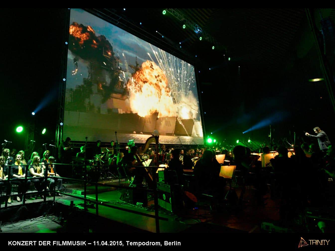 Nie ma tygodnia, aby na którymś z kanałów telewizyjnych czy na dużym ekranie nie był grany, film do którego muzykę napisał Hans Zimmer. Za sprawą tego niezwykle zapracowanego kompozytora wiele osób najpierw sięga po ścieżkę dźwiękową, dopiero później oglądając film; często jego muzyka jest traktowana jako zupełnie niezależna względem obrazu materia. Za sprawą Trinity Group w ramach cyklicznych „Koncertów Muzyki Filmowej” w różnych miastach rozbrzmiewa muzyka Zimmera wykonywana na żywo przez orkiestrę, chór i wyśmienitych solistów. Tym razem projekt zawitał w Berlinie i miał kilka polskich akcentów. 11 kwietnia w berlińskim Tempodromie zorganizowana została kolejna odsłona niezwykłego koncertu poświęconego twórczości Hansa Zimmera. Niemiecka publiczność miała okazję posłuchać najsłynniejszych kompozycji, napisanych do takich superprodukcji jak „Gladiator”, „Incepcja”, „Batman: Mroczny Rycerz”, „Piraci z Karaibów” czy „Pearl Harbor”, wykonywanych tego wieczora przez Polską Orkiestrę Sinfonia Iuventus oraz chór pod dyrekcją Macieja Sztora. Po raz kolejny obsługą koncertu zajęła się polska firma Astral Concert. Warszawska firma brała jak do tej pory już udział w realizacji odsłon projektu m.in. w Sali Kongresowej w Warszawie, w gdańskiej Ergo Arenie czy w Hali Stulecia. Berliński Tempodrom został zbudowany specjalnie na potrzeby różnorodnych wydarzeń artystycznych i jest bardzo przyjazny akustycznie. Sala przypomina swoim projektem koło, a publiczność otacza scenę w zasadzie ze wszystkich stron. Grzegorz Łapczyński, szef Astral Concert, przyznał: „Chociaż sala jest dosyć wysoka, to jednak sufit został wypełniony konstrukcją zbudowaną z materiałów akustycznych, które powodują, że efekt studni jest tutaj praktycznie niesłyszalny. Dzięki temu już przy pustej, niewypełnionej publicznością sali dźwięk jest poprawny i nie ma potrzeby stosowania linii opóźniających”. System nagłaśniający był skonfigurowany tak, by za jego pomocą można było zagrać na odległość około 40 m. W trakcie każdego z koncertów publiczność zasiadała dookoła sali, z wyjątkiem najwyższych sektorów oraz na płycie na dostawionych krzesłach; samo granie przypominało sytuację, z jaką mamy do czynienia np. w Sali Kongresowej. Na jednym koncercie było około trzech i pół tysiąca osób.Koncerty Muzyki Filmowej od lat obsługuje ten sam system, a więc XLC 127DVX firmy Electro-Voice, w liczbie dziewięciu modułów na stronę. System odznacza się horyzontalnym kątem propagacji na poziomie 120°, co sprawdza się świetnie właśnie w przypadku konieczności grania dookoła sceny. Za najniższe częstotliwości odpowiadały dwa wiszące subbasy Electro-Voice XLC215 w każdym gronie oraz dwa subbasy XSUb stojące po dwóch bokach sceny.Wszystkie wspomniane kolumny były zasilane za pomocą dedykowanych wzmacniaczy Electro-Voice TG7 i CP4000, natomiast do sterowania całego systemu użyto procesorów Dx46 wraz z polecanym przez producenta programem Laps. Ze względu na rozmieszczenie publiczności otaczającej scenę na planie okręgu konieczne było zastosowanie outfilli. Ekipa Astral Concert wykorzystała do tego zadania system Meyer Sound M’elody, który dzięki niewielkim wymiarom oraz walorom brzmieniowym w zestawieniu z głównym systemem PA przyniósł satysfakcjonujące rezultaty.Ze względu na pokaźnych rozmiarów ekran znajdujący się w świetle sceny, grona systemu głównego i outfille musiały wjechać niemal pod sufit hali, tak aby nie zasłaniały projekcji. Właśnie z uwagi na fakt, że grona wisiały bardzo wysoko, a publiczność siedziała niemal przy samej scenie, konieczne było zastosowanie frontfilla. W tym celu zdecydowano się sięgnąć po niewielkie, ale – jak przyznał Grzegorz Łapczyński – bardzo skuteczne kolumny d&b audiotechnik MAX12. Z powodzeniem wypełniły one pole przed sceną i zapewniły dobrą słyszalność do samej granicy, gdzie zaczynał grać system główny. Zastosowanie systemu EV XLC pozwoliło uzyskać odpowiednie ciśnienie akustyczne w każdym punkcie hali, bez konieczności wieszania linii opóźniających, wykluczając – ku zadowoleniu organizatorów – ryzyko, że dodatkowe paczki będą zasłaniały widoczność na ekran i scenę. Szczególne wyrazy uznania należą się Tomkowi „Tony’emu” Lewandowskiemu, który zaprojektował i czuwał nad konfiguracją całego systemu. W trakcie realizacji koncertów Muzyki Filmowej firma Astral Concert korzysta z konsolet Soundcraft Vi6 dla orkiestry oraz z modelu Vi1 dla chóru. Vi6 jest połączona z stage rackiem znajdującym się na scenie za pomocą światłowodu, natomiast Vi1 korzystała z połączenia analogowego. Jarosław Regulski, realizator biorącej udział w koncertach orkiestry Sinfonia Iuventus, lubi pracować właśnie na konsoletach Vi, dlatego też od kilku lat konsolety te są dostarczane do obsługi praktycznie wszystkich koncertów trasy.Firma nagłośnieniowa wymaga, aby stanowisko FOH znajdowało się zawsze możliwie najbardziej centralnie, w odległości około 20–25 m od sceny, aby zapewnić realizatorowi możliwie największy komfort pracy. Przy obsłudze „Koncertów Muzyki Filmowej” nie jest wykorzystywana konsoleta monitorowa, a odsłuchy są realizowane z frontu. Jeżeli chodzi o odsłuch, na scenę dostarczane są monitory podłogowe d&b audiotechnik MAX 12 dla dyrygenta, solistki oraz gitarzysty, a także sidefille dla chóru. Przy takiej liczbie wedge’y nie ma potrzeby ustawiania na siłę dodatkowej konsolety, która miałaby pracować na i tak bardzo ciasnej scenie.Z uwagi na fakt, że berliński koncert był kolejnym miejscem trasy, która trwa już kilka lat, zestaw użytych mikrofonów nie uległ zmianie. Do nagłośnienia orkiestry wykorzystywane są konstrukcje: Neumann KM184, Audio-Technika AT 4040 i ATM 350, AKG C414, C