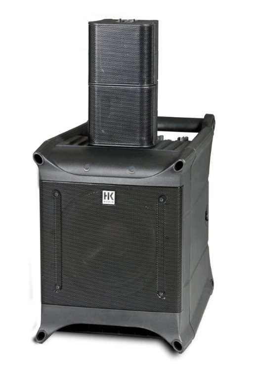 W dzisiejszych czasach rynek usług nagłośnieniowych wymaga bardzo dużej elastyczności, stąd też firmy świadczące takie usługi starają się mieć w swoim asortymencie sprzęt na każdą niemal okazję. Co więcej, w wielu przypadkach niebagatelnego znaczenia nabierają kwestie transportowe, o czym doskonale wiedzą osoby, którym przyszło nagłaśniać imprezy w zakamarkach starego miasta, gdzie podjechanie samochodem pod sam lokal nie jest możliwe. Do takich zastosowań bez wątpienia przydałby się mały, lekki, dobrze grający i przy tym bardzo uniwersalny system. Szukając takowego, z pewnością warto zwrócić uwagę na propozycję firmy HK Audio, której to premiera miała miejsce na tegorocznej edycji frankfurckich targów. System Nano, bo o nim mowa, występuje w dwóch wariantach: mniejszym (model 300) i większym (model 600). W obu przypadkach w skład zestawu wchodzą dwa małe satelity oraz subwoofer z wbudowanymi wzmacniaczami oraz mikserem, zatem mamy tu do czynienia z typową konfiguracją 2.1, ale na tym nie koniec, gdyż elementy systemu przygotowano tak, by można było budować na ich bazie cały szereg innych konfiguracji. Już na pierwszy rzut oka propozycja HK Audio wyróżnia się bardzo małym rozmiarem głośników satelitarnych, co przywodzi na myśl cały szereg zastosowań, w których nagłośnienie powinno być prawie niewidoczne. Od razu należy powiedzieć, że system NANO to znakomita propozycja dla muzyków, ale z uwagi na profil MiT, w niniejszym teście skupimy się raczej na zastosowaniach profesjonalnych. NANO 300 – 116 dB z 10 kg Mniejszy system bazuje na subbasie z pojedynczym ośmiocalowym głośnikiem umieszczonym w komorze bass-reflex. Obudowę wykonano z poliamidu, zaś tworząca tunel bass-reflex równoległa do podłoża ścianka wykonana została z aluminium o grubości 5 mm, usztywniając tym samym obudowę i stanowiąc jednocześnie radiator dla umieszczonego na niej modułu wzmacniaczy (podmuchy powietrza wymuszają dodatkowe chłodzenie). Zastosowane końcówki pracują w klasie D i są w stanie dostarczyć 160 W do głośnika basowego oraz 2 × 35 W do satelitów. Opisane zabiegi konstrukcyjne sprawiły, że stanowiący podstawę systemu NANO 300 subbas jest w stanie zagrać już od 44 Hz, generując SPL na poziomie 116 dB – to całkiem nieźle jak na urządzenie ważące zaledwie 8 kg. Tak niewielka waga pozostawiła zapas na zamocowanie do subbasu dwóch malutkich satelitów, całość zaś przenosimy za pomocą jednego z dwóch uchwytów rurkowych z tyłu. Sumaryczne 10 kg nie będzie stanowiło wyzwania nawet dla muzykujących pań, toteż nawet początkujący technik sceniczny bez problemu przeniesie dwa zestawy NANO 300. Oprócz dokowania satelitów w celach transportowych, możemy je również (po uprzednim połączeniu ze sobą) zamocować bezpośrednio na subbasie, tworząc tym samym spójny system, przeznaczony do ustawienia podwyższeniu bądź pełniący rolę monitora podłogowego. Producent przewidział także możliwość ustawienia satelitów na sztycy przykręconej do otworu znajdującego się w górnej ściance subbasu. Tylną zaś część górnej ścianki zajmuje prosty mikser, podzielony na cztery sekcje. Wbudowany mikser Pierwsza sekcja jest pojedynczym kanałem, do którego sygnał podajemy za pomocą gniazda combo i ustalamy jego rodzaj za pomocą dwupozycyjnego przełącznika (mikrofon lub sygnał liniowy). Pierwsze z dwóch pokręteł w sekcji pozwala ustalić jego głośność, zaś drugie pozwala na kształtowanie barwy poprzez płynne przestrajanie się pomiędzy ustawieniem neutralnym i konturowym (podbicie dołu i góry pasma). Sekcję drugą wyposażono w dwa gniazda combo, dzięki czemu może ona współpracować z instrumentem typu gitara z przystawką bądź ze stereofonicznym źródłem liniowym, takim jak np. keyboard. Wyboru źródła również dokonujemy przełącznikiem, zaś regulacja barwy i głośności przebiega analogicznie jak w sekcji pierwszej, jak również i trzeciej. Trzecia sekcja to typowe wejście stereofoniczne, wyposażone w parę gniazd RCA (chinch) zdublowanych pojedynczym gniazdem minijack. Wetknięcie wtyczki w to gniazdo odcina sygnał z wejścia RCA. Czwarta sekcja wbudowanego miksera to zasadniczo blok wyjściowy wzbogacony o przełączniki trybu pracy, włącznik sieciowy oraz diodę sygnalizującą załączenie zasilania (kolor zielony) oraz zadziałanie limitera i ewentualne błędy (kolor czerwony). Umieszczono tu regulatory głośności subbasu oraz globalnego balansu, wyjściową parę gniazd TRS oraz złącze link out, również na gnieździe TRS. Pierwszy z przełączników pozwala ustalić, czy na wyjściu stereofonicznym ma pojawić się suma miksera (np. celem podania na rejestrator), czy też sygnał z kanału drugiego (ta opcja przyda się w sytuacji korzystania z zewnętrznego miksera). Z kolei za pomocą drugiego przełącznika ustalamy tryb pracy zestawu NANO 300: stereofoniczny (typowe 2.1) bądź monofoniczny, w którym to satelity są umieszczone jeden na drugim. Skoro zaś przy satelitach jesteśmy, czas przyjrzeć się im nieco dokładniej. Intrygujące maleństwa Ważący zaledwie kilogram głośniczek satelitarny przypomina kształtem niewielki sześcian o boku 13 cm. Można go przypiąć bezpośrednio do subbasu, ustawić na specjalnej tyczce bądź przykręcić do zwykłego statywu mikrofonowego o wąskim gwincie. W obu sytuacjach wysokościowych sygnał z subbasu podajemy kablem z końcówką jack, czego oczywiście nie pochwalam, gdyż tego typu złącze jest używane do innych celów i łatwo o kosztowną w skutkach pomyłkę, zwłaszcza jeśli system obsługuje np. pani nauczycielka w szkole. Przednia część satelity pokryta jest metalową siateczką o bardzo drobnych oczkach, której zadaniem jest oczywiście ochrona przetwornika. Jak można się spodziewać po rozmiarach plastikowej obudowy satelity, zastosowano tu pojedynczy