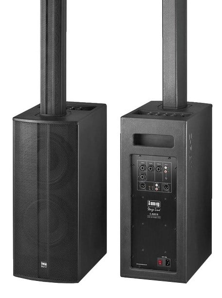 Przenośny system słupkowy, trójdrożne rozwiązanie aktywne opierające się na subbasie w konfiguracji 2 × 8” oraz dwunastogłośnikowej kolumnie wspartej dwoma przetwornikami wysokotonowymi.