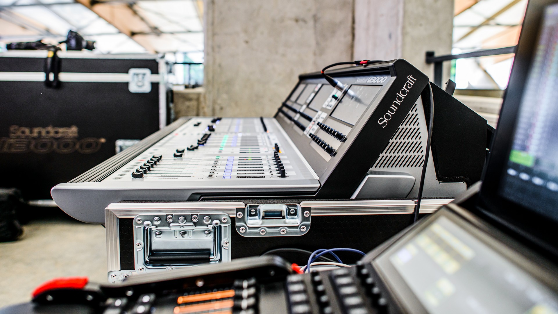 Na stanowisku FOH pracuje niezastąpiona konsoleta Soundcraft VI3000 połączona ze stageboksem w konfiguracji 64in 32out.