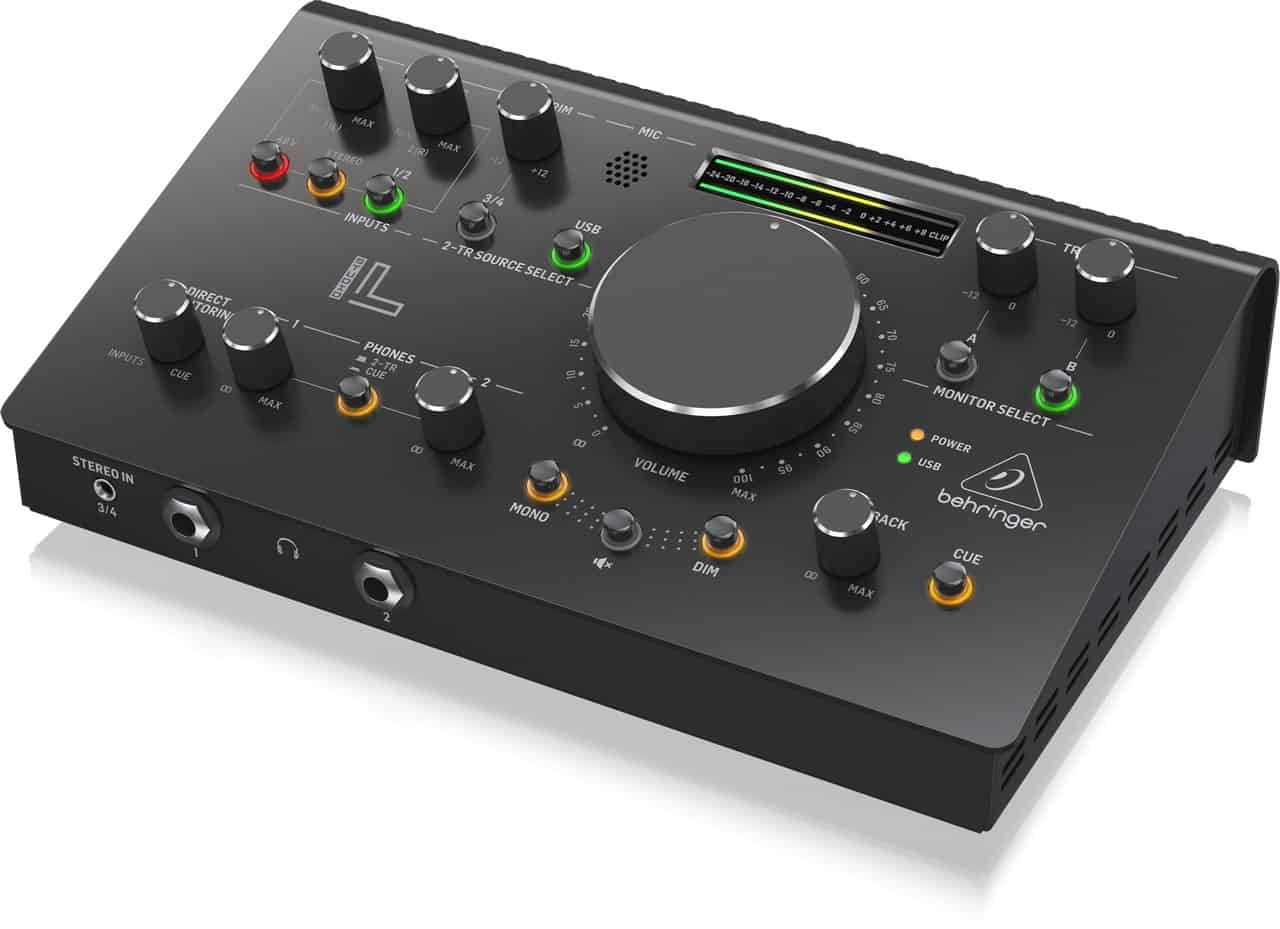 Planując wyposażenie studia nagrań – zarówno w wersji pełnoprawnej, jak i skromniejszej, projektowej, ograniczonej ścianami pokoju lub w niewielkiej pracowni – należy dokonać szeregu inwestycji. Dróg, którymi sygnał jest przesyłany od źródła dźwięku aż do monitorów odsłuchowych lub słuchawek, jest wiele, a każda z nich jest równie ważna. Zaawansowane przestrzenie studyjne wyposażone są w szereg urządzeń peryferyjnych, które spełniają określone zadania. Czy jest możliwe, aby ograniczyć się w pracy do jednego urządzenia, będącego swego rodzaju sercem systemu? Takiego, które jednocześnie będzie w stanie zadbać o odpowiednie przetwarzanie sygnału wchodzącego przez mikrofon do całego komputerowego ekosystemu, ale również o sygnały wychodzące z oprogramowania DAW, które następnie przekieruje w odpowiednie odsłuchowe rejony? Marka Behringer wśród wielu nowości, jakimi w ostatnich miesiącach raczy potencjalnych zainteresowanych, wprowadziła właśnie do oferty sprzęt, który jest zarówno interfejsem audio, wyposażonym w przedwzmacniacze mikrofonowe, jak i systemem zarządzania monitoringiem.