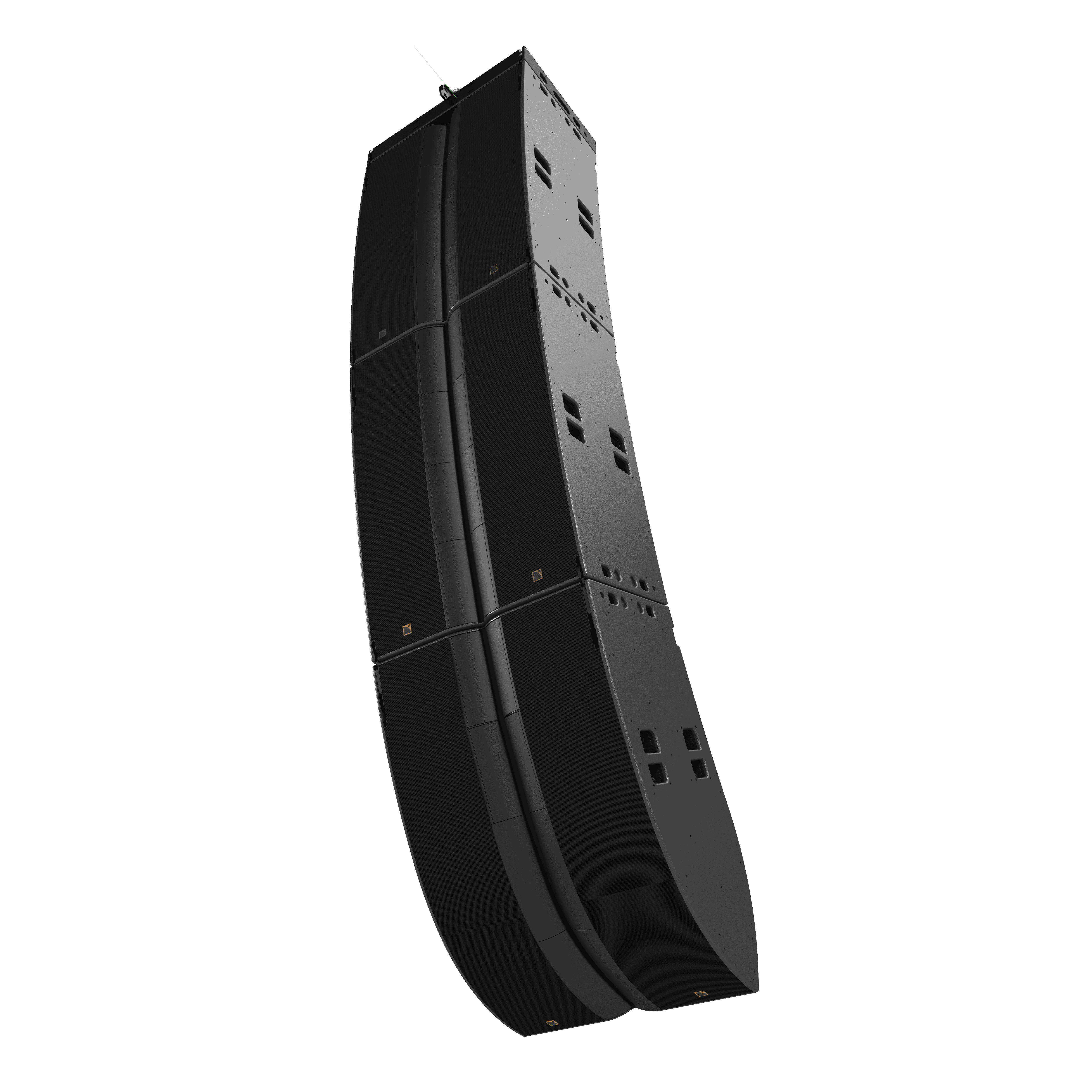 W przypadku serii L zdecydowano się na progresywne rozwiązania mechaniczne. Obudowa L2 zapewnia pokrycie w pionie wynoszące 10°, zaś źródło wyposażono w cztery regulowane moduły Panflex (ta technologia łączy w sobie mechanicznie regulowane żebra oraz specjalne algorytmy DSP.), pozwalające na uzyskanie różnych wartości pokrycia w poziomie – 70°, 90°, względnie 110°. Z kolei L2D gwarantuje 60° pokrycia w pionie i także posiada cztery moduły, przy czym w górnej części znajdują się dwa Panflex, dzięki czemu możemy regulować pokrycie w poziomie, uzyskując wartości 70° (symetrycznie), 90° (asymetrycznie), albo 110° (symetrycznie). W dolnej części mamy dwa progresywne moduły (L-Fins) o kącie początkowym 110° i rozszerzającym się na dole do 140°. Dzięki swoim walorom L2D może być użyty samodzielnie lub w gronie z L2, wypełniając dół i gwarantując pokrycie już pierwszych rzędów. Generalnie możemy połączyć ze sobą 4 moduły L2, albo 3 L2 i na dole jeden L2D. Autorski system podwieszania jest bardzo łatwy i szybki w obsłudze, a jednocześnie solidny, zapewniając uzyskanie stałej i pożądanej krzywizny. Do tego jest to system bezbolcowy, co także pozwala uniknąć wielu nieprzyjemnych sytuacji, bo przecież piny łatwo zgubić, a do tego zwykle giną one wtedy, gdy są akurat potrzebne. Całość skonstruowano tak, by wyeliminować potencjalne błędy – po prostu nie da się inaczej złożyć grona, wszystko jest idealnie spasowane i wykwalifikowana ekipa zawsze uzyska optymalny rezultat. Co będziemy kilkakrotnie podkreślać – rozmiary samych źródeł, jak i niezbędnych akcesoriów są – jak na takie moduły oczywiście – naprawdę relatywnie kompaktowe, co ma dla większości użytkowników bardzo duże znaczenie.