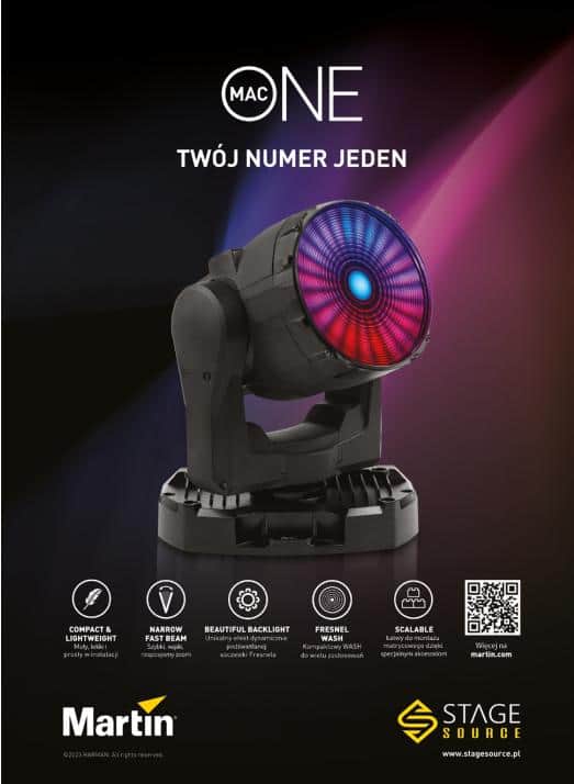 Wśród systemów LED-owych firmy Martin pojawiła się kolejna nowość – panele EC-10. Po raz pierwszy mogliśmy je oglądać podczas kwietniowych targów Prolight + Sound, a już wkrótce pojawią się w sprzedaży.EC-10 to siostrzany produkt znanych już EC-20, z tym że oferujący wyższą rozdzielczość (10 mm zamiast 20 mm). Jeśli chodzi o jasność, kolory, kontrolę i przetwarzanie obrazu, te dwa modele paneli są ze sobą w stu procentach kompatybilne. Charakteryzuje je ten sam lekki design i sposób montażu – łatwe łączenie paneli bez użycia narzędzi, wyeliminowane kable w połączeniach pomiędzy panelami, te same akcesoria i możliwość łączenia paneli pod kątem dla uzyskania zakrzywionych powierzchni o promieniu krzywizny od 1,5 m. Wszystko to sprawia, że panele EC-10 i EC-20 można bez problemu łączyć w jednym systemie.Pojedynczy moduł EC-10 to panel o rozmiarach 480 × 100 × 720 mm i wadze 11,3 kg, który zawiera 48 × 72 pikseli. Charakteryzuje się jasnością 4000 nit, odświeżaniem 3000 Hz, które eliminuje efekt migotania, i stopniem ochrony IP65, który umożliwia wykorzystanie paneli również na zewnątrz. Kąt dobrej widoczności w poziomie wynosi 140°. Każdy panel ma złącza dla sygnału wideo (analogowego i cyfrowego), zasilania i danych sterujących. System może być kontrolowany z wykorzystaniem procesorów P3 Martina, które zapewniają szerokie możliwości przetwarzania wideo.www.martin.com