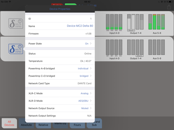Dzięki aktualizacji konfiguracja końcówki mocy Delta jest teraz dużo wydajniejsza i szybsza niż dotychczas. Najnowsza wersja oprogramowania AudioCore Amped Edition umożliwia bezpośrednią konfigurację końcówek mocy z serii Delta bezpośrednio z sieci przez złącze Ethernet lub lokalnie – przez USB lub złącze RS484. Detekcja połączenia odbywa się automatycznie i nie wymaga od realizatora dokonywania ustawień COM portu szeregowego. Zwiększyło to znacząco dostęp zarówno do jednostek z serii Delta, jak i DPA i APA. Oprogramowanie jest przeznaczone dla wzmacniaczy. Są one wykrywane błyskawicznie i możemy przejąć na nimi kontrolę chwilę po połączeniu. Z poziomu oprogramowania mamy dostęp do wszystkich parametrów pokładowego procesora DSP.