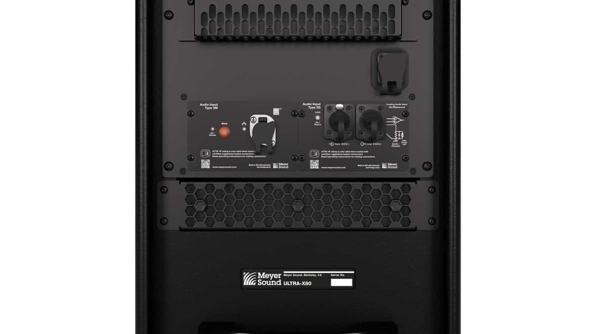 ULTRA-X80 wyposażono w bardzo lekki i wydajny wzmacniacz klasy D, dzięki czemu udało się zachować relatywnie niewielką wagę i wymiary całości, przy jednoczesnym zagwarantowaniu odpowiedniej mocy. Źródło waży około 60 kilogramów, co – jak na takie możliwości – wydaje się naprawdę niewiele; porównajmy choćby z masywnymi zestawami liniowymi. Wymiary to 864 mm × 644 mm × 464 mm, czyli także stosunkowo niewielkie. To ułatwia transport i instalację na miejscu – głośnik wyposażono w 12 punktów mocowania M8 × 1,25 mm (sześć na dole obudowy i sześć na górze). Z tyłu znajduje się panel ze wszystkimi przyłączami, zarówno analogowymi Neutrik XLR (wejście oraz wyjście), jak i cyfrowymi Neutrik etherCON. Zasilanie odbywa się za pomocą łącza Neutrik powerCON TRUE1. Wszystkie te gniazda wyposażone są w TOP, czyli True Outdoor Protection – ochronę przed warunkami atmosferycznymi w przypadku użycia na zewnątrz. Nieużywane łącza są zabezpieczone wodoszczelną klapką. Także w takich detalach widać staranność, z jaką Meyer Sound zaprojektował i zbudował swój nowy model.