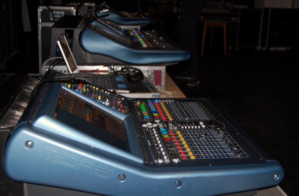 „Kłamstwa o nagłośnieniu liniowym” – taki nieco przewrotny tytuł nosił jeden z punktów szkolenia dotyczącego nagłośnienia Electro-Voice i systemów miksowania dźwięku Midas, które odbyło się 22 stycznia 2014 roku w Pile. Jak się okazało, jego organizator, firma Audio-Plus, nie miał problemu ze sporą frekwencją. Przyczyniła się do tego zapewne intrygująca formuła „odczarowywania” kłamstw, która poza systemami liniowymi dotyczyła również innych tematów, takich jak moc wzmacniaczy i głośników oraz korekcja. Spotkanie w Pile było elementem całego cyklu, jaki przeprowadzają z ramienia firmy Audio-Plus Antoni Paluszkiewicz oraz Maciej Błachnio, zaś na liście odwiedzanych przez nich miejsc znalazły się miejscowości rozrzucone po całym kraju. W przypadku Piły jako miejsce spotkania nieprzypadkowo wybrane zostało Regionalne Centrum Kultury „Fabryka Emocji”, gdyż obiekt ten wyposażony został przez lokalną firmę VIVO w sprzęt Electro-Voice, o czym pisaliśmy wcześniej na łamach MiT. Dla rozluźnienia i „przewietrzenia” uszu uczestnicy mogli przed wykładami posłuchać m.in. utworów z nieśmiertelnej płyty „Brothers in Arms” zespołu Dire Straits na systemie złożonym z trzech zestawów EVF1152D i dwóch subbasów EVF2151D na stronę. Całość napędzana jest wzmacniaczami serii CPS i zarządzana matrycą N8000 (IRIS-Net), która odpowiada m.in. za obsługę frontfilli oraz podbalkonowych linii opóźniających opartych na zestawach EVU1062/95. Nagłośnienie skutecznePierwszą część szkolenia poprowadził Maciej Błachnio, pełniący w firmie Audio-Plus funkcję managera systemów koncertowych. Warto w tym miejscu dodać, że oprócz pracy dla dystrybutora marki Electro-Voice, Maciej intensywnie działa jako realizator dźwięku, współpracując m.in. z takimi gwiazdami jak Małgorzata Ostrowska. Drobnego wyjaśnienia wymagało słowo „skuteczne” w tytule pierwszej części wykładu – nie chodziło tu bynajmniej o maksymalizację ciśnienia dźwięku z wata podanej mocy (choć i to zostało należycie uwzględnione), tylko o skuteczność polegającą na optymalnym doborze sprzętu pod kątem danego zastosowania. W ramach akcji odkłamywania systemów wyrównanych liniowo w pierwszej kolejności przedstawione zostały fizyczne podstawy działania tego typu sprzętu – pokazano, jak zachowuje się źródło punktowe i liniowe, a także dla jakich częstotliwości możemy o takowym źródle mówić przy danej jego długości, wszak nieskończona długość źródła jest niewystępującą w praktyce abstrakcją, potrzebną jednak do rozważań teoretycznych. Maciej przekazał uczestnikom szkolenia cenne wskazówki odnośnie dopasowywania długości grona do przewidywanego zasięgu dla częstotliwości 100 Hz, która dla większości systemów jest dolną użyteczną granicą pasma pracy (poniżej „pałeczkę” przejmują subbasy). Podkreślony został również fakt, że systemy liniowe nie zawsze są optymalnym wyborem, a w wielu przypadkach ich zastosowanie przynosi więcej szkody niż korzyści. Prowadzący podjął się próby dokonania bilansu korzyści i strat wynikających z zastosowania systemu liniowego lub tradycyjnego, lecz niestety nie zostały przy tym uwzględnione systemy tubowe, w przypadku których kwestia skuteczności i idąca za tym liczba wzmacniaczy potrzebnych do wygenerowania żądanego ciśnienia akustycznego przedstawia się znacznie korzystniej. Poruszono również kwestię dopasowania dyspersji zestawów głośnikowych do kształtu pomieszczenia, co jest o tyle ważne, że wiele osób zajmujących się nagłośnieniem nadal wydaje się nie przywiązywać do tego należytej wagi. Cyfrowe systemy miksowania dźwięku MidasDrugą część prezentacji poprowadził specjalista do spraw cyfrowych systemów audio, Antoni Paluszkiewicz, zapoznając słuchaczy z systemami firmy Midas i współpracującymi z nimi urządzeniami marki Klark-Teknik. Na liście tematów mogących wzbudzać szczególne zaciekawienie, pierwsze miejsce zajmuje tu bez wątpienia kwestia legendarnego brzmienia Midasa i pojawiającego się wraz z nią pytania: czy w dobie techniki cyfrowej urządzenia mogą się pod względem brzmieniowym jeszcze jakoś wyróżniać? Otóż okazuje się, że tak, i nie jest to wyłącznie kwestia marketingu, czarów ani przesądów. Stoi za tym przede wszystkim czysta inżynieria, począwszy od stabilnego zachowania przedwzmacniaczy w momencie przesterowania, poprzez starannie zaprojektowane algorytmy korekcji i dynamiki, na kompensacji latencji kończąc. Co ważne, użytkownikowi pozostawiono dużą dowolność ustalania sposobu działania wymienionych układów, dostosowując go do aktualnego zapotrzebowania, jak również własnych preferencji. Oprócz samych konsolet z serii PRO stanowiących serce systemu, omówione zostały również stageracki oraz urządzenia pomocnicze (takie jak np. rejestrator wielośladowy, przedłużacz transmisji cyfrowej czy też konwerter sygnału), których wspólnym elementem jest protokół komunikacji i przesyłania sygnałów noszący oznaczenie AES50. Niestety, na szczegółowe omówienie działania protokołu nie wystarczyło czasu, gdyż nadspodziewanie wydłużyła się przerwa obiadowa, stąd też część wykładowa została skrócona, zaś uczestnicy szkolenia zostali poproszeni o przeniesienie się z widowni na scenę. Część praktyczno-warsztatowaNa scenie Regionalnego Centrum Kultury ustawione zostały trzy w pełni uruchomione konsolety Midas z serii PRO, które podłączono do wielośladowego rejestratora i odtwarzacza Klark-Teknik DN9696. Dzięki temu uczestnicy szkolenia mogli w praktyce przekonać się, jak faktycznie przebiega miksowanie z użyciem cyfrowych stołów Midasa. Cały czas asystował przy nich Antoni Paluszkiewicz, na bieżąco odpowiadając na pytania i rozwiewając wszelkie wątpliwości. A skoro o takowych mowa, 