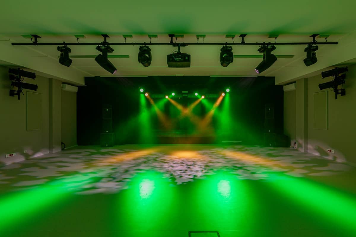 W sali wielofunkcyjnej zainstalowano cenione reflektory profilowe ETC SOURCE FOUR ZOOM.