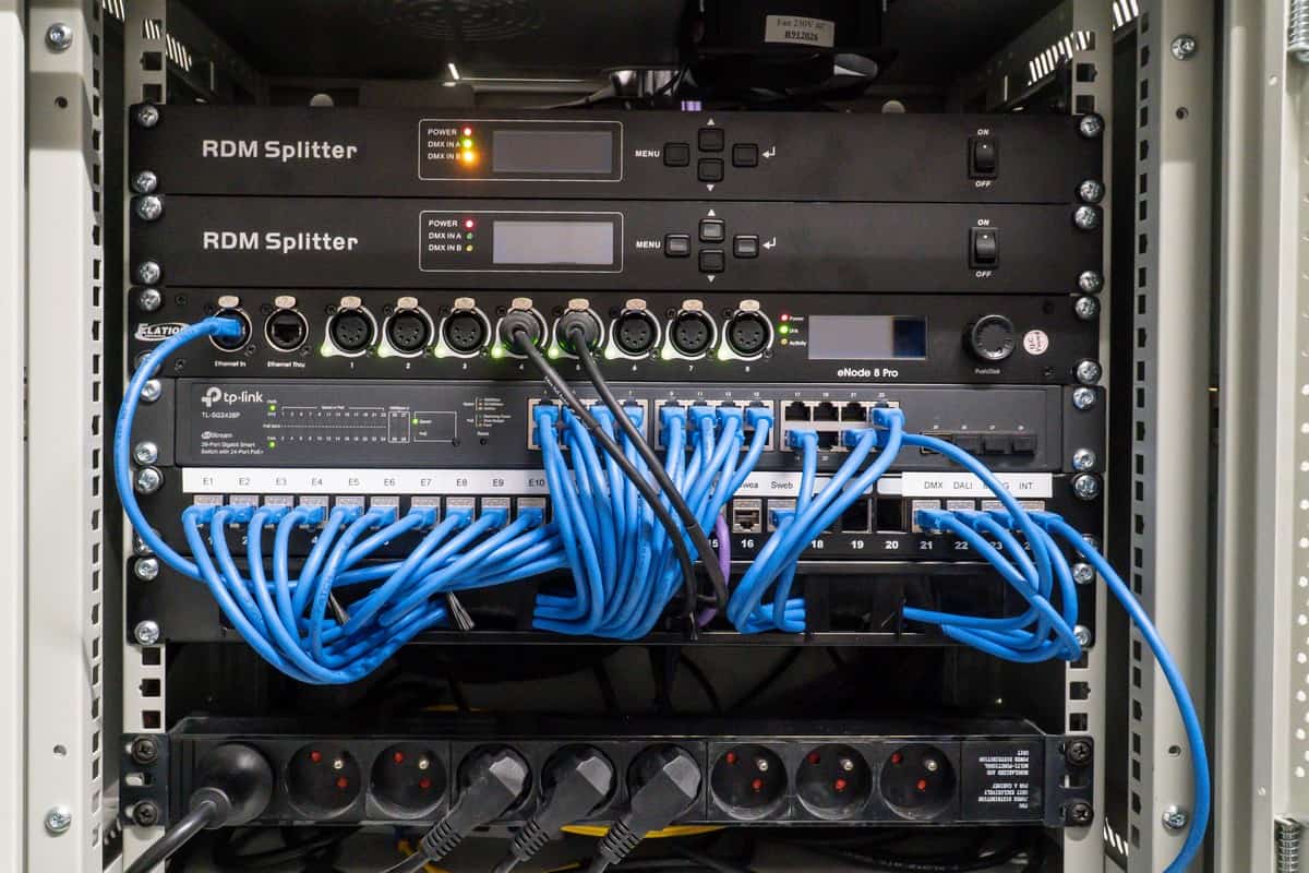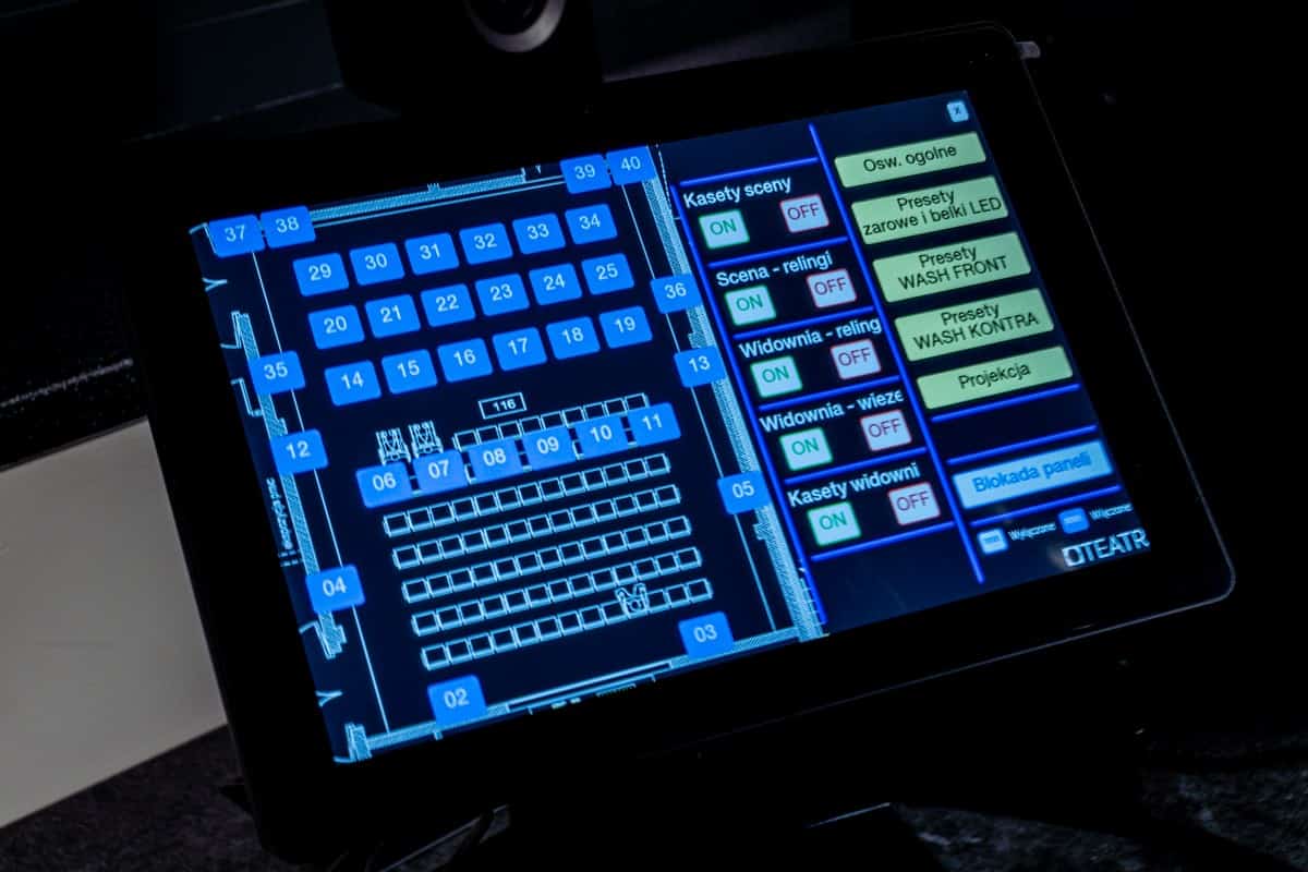 Całość jest kontrolowana z poziomu kompaktowej i lubianej przez realizatorów oświetlenia konsolety ChamSys QuickQ20 obsługującej 1024 kanały DMX. Komfort pracy zapewnia dotykowy ekran 9,7”, ponad 30 suwaków, 4 enkodery oraz wbudowany access point umożliwiający zdalne sterowanie konsolą. QuickQ20 współpracuje w zakresie dystrybucji sygnału z wielofunkcyjnym 8-portowym konwerterem DMX/Ethernet – ELATION eNode 8Pro, sześcioma mobilnymi 2-portowymi bramkami DMX/Ethernet – ELATION eNode 2 POE oraz sprawdzonymi splitterami DMX RDM – ACME CA-M28. Stabilna i szybka komunikacja pomiędzy kluczowymi urządzeniami w racku sterowania, a kabiną oświetlenia realizowana jest poprzez dwa przełączniki sieciowe połączone wzajemnie przewodem światłowodowym.