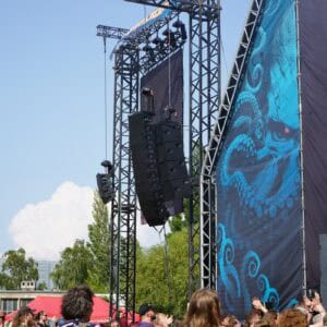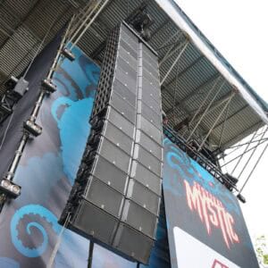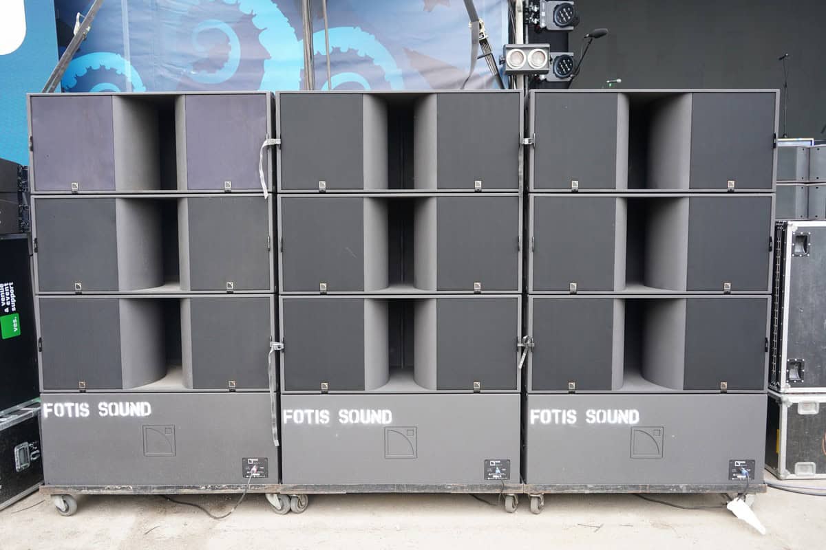 Na Park Stage w tym roku stanęła nowa, imponująca scena przygotowana przez firmę Quattro Marka Fajkiela – tę samą, która odpowiadała również za konstrukcje na Main Stage. Za nagłośnienie odpowiadała firma Prosound, która wykorzystała do celu rozwiązania marki d&b audiotechnik. System frontowy tworzyły dwa grona (L+R), każde złożone z dziesięciu modułów V8 oraz dwóch modułów V12. Dla zapewnienia spójnego brzmienia, odpowiedniej kierunkowości i równomiernego pokrycia niskimi częstotliwościami, za głównymi gronami powieszono subwoofery V-SUB – po cztery na stronę. Dodatkowo przed sceną ustawiono dziesięć subwooferów SL-SUB, czyli o dwa więcej niż w ubiegłym roku. Frontfill zbudowano z czterech zestawów point source d&b V7P, opartych na tych samych przetwornikach co system główny, co zapewniło spójność brzmieniową. Dodatkowe wsparcie w bocznej strefie przy stoiskach z „merchem” stanowił outfill z czterech modułów V8. Rozwiązanie to sprawdziło się znakomicie.