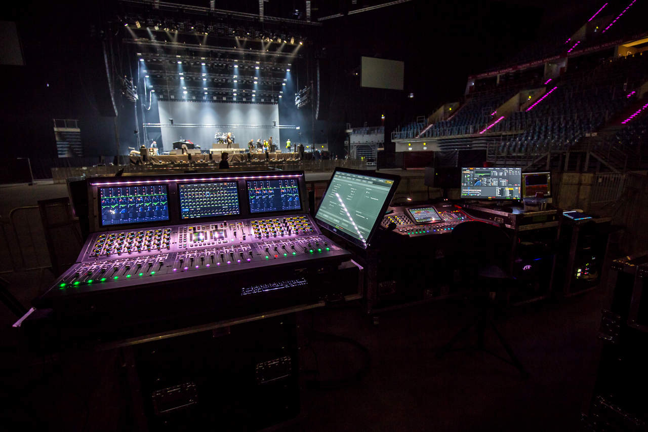Kimmo Ahola i Erich Weihrauch o dźwięku w trakcie najnowszej trasy grupy Mocne gitarowy riffy, bas z dużą ilością środka i stopa z klikiem, to elementy które pewnie większości z nas kojarzą się z zespołami metalowymi i około metalowymi. I słusznie. Przecież do takiego brzmienia przyzwyczaiły nas płyty i koncerty takich artystów jak: Metallica, Slayer, Pantera czy Iron Maiden. Jednak metal wciąż ewoluuje i kolejne zespoły sięgają po coraz to nowsze środki wyrazu śmiało eksperymentując z nowymi brzmieniami i instrumentami wzbogacającymi klasyczny zestaw bas, gitara, bębny. W efekcie do metalowych brzmień dołącza elektronika, rap, smyczki czy instrumenty dawne. Przykładem zespołu który nie boi się wzywań i swobodnie łączy przesterowane gitary z instrumentami klawiszowymi, orkiestrą symfoniczną i chórami jest grupa Nightwish, wypełniając po brzegi największe hale świata w trakcie koncertów. Jednak miks tak złożonej, dynamicznej i bogatej muzyki z wieloma ozdobnikami i wyjątkowym sopranem dramatycznym na froncie nie jest zadaniem łatwym. Historia grupy Nightwish rozpoczęła swój bieg w 1996 roku, w miejscu świata, które można nazwać mekką metalu, a więc Skandynawii. Zespół założył w Finlandii jej lider, klawiszowiec i autor większości kompozycji i tekstów Tuomas Holopainen. Muzykę grupy od początku wyróżniało przede wszystkim zestawienie mocnych gitarowych riffów z operowym głosem wokalistki. Jako pierwsza przygodę z zespołem rozpoczęła Tarja Turunen, szkolna koleżanka Tuomasa Holopainena, którą później zastąpiła Anette Olzon, a dzisiaj jest to Floor Jansen. Jednak śpiew operowy to nie jedyny element związany z muzyką poważną czy operą, który nieodłącznie towarzyszy kompozycją grupy Nightwish. Praktycznie od pierwszego albumu, na kształt utworów bardzo istotny wpływ mają również orkiestracje. Pierwotnie były one tworzone za pomocą instrumentów klawiszowych, a od 2002 roku, od albumu Century Child, na kolejnych płytach słychać żywą orkiestrę. Grupa ma na swoim koncie dziewięć albumów oraz niezliczoną ilość nagród i nominacji zarówno dla zespołu jak i dla wydawanych przez niego płyt.Dziewiątego marca 2018 roku grupa wyruszyła w kolejną, siódmą już światową trasę koncertową zatytułowaną Decades: World Tour 2018. Rozpoczął ją koncert w Atlancie i po wizycie na największych festiwalach i w halach Europy, Stanów Zjednoczonych, Ameryki Południowej zakończyły dwa koncerty w ojczyźnie grupy w Finlandii.Specjalnie na trasę została przygotowana wyjątkowa setlista na której znalazły się zarówno najpopularniejsze jak i te mniej znane utwory ze starszych płyt grupy jak i najnowsze kompozycje z ostatniego albumu Endless Forms Most Beautiful. W rozmowie z magazynem Muzyka i Technologia realizator FOH grupy Kimmo Ahola oraz inżynier systemu Erich Weihrauch opowiedzieli nam o konfiguracji systemu, zastosowanych narzędziach i pracy z tym wyjątkowym zespołem. Realizator FOH grupy Nightwish Kimmo Ahola za konsoletą Avid S6L-24C, która jest własnością firmy Kimmo AMS Oy Ltd i na którejbyły realizowane wszystkie koncerty trasy Decades: W orld Tour. Łukasz Kornafel, Muzyka i Technologia: W ostatnią trasę koncertową zdecydowałeś się zabrać konsoletę Avid S6L-24C, jednak nie jest to oczywiście Twoje pierwsze spotkanie z konsoletami marki AVID. Kimmo Ahola, FOH Nightwish: W trakcie poprzedniej trasy używałem modelu S3L-X. Chociaż teraz konsoleta na której pracuję ma większą moc obliczeniową i mogę pracować z większą ilością kanałów, to jednak wciąż uważam, że model S3L to bardzo dobra konstrukcja. To co jest jej największą zaletą to fakt, że można z nią niezwykle łatwo podróżować. Gdy tylko pojawiła się na rynku konsoleta S6L w wersji 24C wiedziałem, że to jest doskonałe rozwiązanie dla mnie. Ma ona tyle samo faderów co model 24D, nieco mniej pokręteł, które i tak nie są mi bardzo potrzebne na stanowisku FOH, ale przede wszystkim jest mniejsza i ma mniejszą wysokość, co znacząco ułatwia jej transport. Również gdy gramy koncerty na festiwalach, znacznie łatwiej jest się zainstalować z tak niewielką konstrukcją.Kwestie transportowe były kluczowe w takcie poprzedniej trasy. Podróżując np. do Japonii czy Australii mieliśmy narzucone limity jeżeli chodzi o rozmiar caseów. S3L-X mieścił się do skrzyni Peli dzięki czemu mogłem swobodnie podróżować wraz z konsoletą. Teraz w ogóle nie musze się tym przejmować, ponieważ korzystamy z usług firmy, która zajmuje się naszymi transportami i w przypadku koncertów w odległych częściach świata, cały sprzęt w kontenerze wypływa dwa tygodnie wcześniej i czeka na nas na miejscu. Również na stanowisku MON zastosowano konsoletę marki AVID. Tym razem był to jednak model S6L -24D. Teraz masz dwadzieścia cztery fadery, ale jak wspomniałeś jeździłeś również z konsoletą S3L-X. Jak wygląda zatem organizacja Twojej pracy na konsolecie? Tak naprawdę mogę zrealizować taki koncert jak produkcja grupy Nightwish z pomocą szesnastu faderów. Tak naprawdę korzystam tylko z jednej warstwy gdzie mam grupy VCA pozwalające na kontrolę takich źródeł wejściowych jak: stopa, werbel, reverb przypisany do werbla, tomy, reverb tomów, overheady, bas, gitary, keyboardy, ślady, wokal Marco Hietala, wokal Floor Jensen, wokal Troya Donockley’a, reverb wokali, delay wokali. Ponadto mam tutaj również główny fader głośności. Jak są zorganizowane pozostałe warstwy? Druga warstwa jest związana tylko z bębnami. Mam tam kanały wejściowe oraz grupy VCA i powroty wysyłek efektów. Tak naprawdę nie potrzebuję tam zaglądać, bo z grupą Nightwish zagrałem mniej więcej 700 koncertów, z czego ponad 200 to były koncerty zrealizowane z pomocą konsolet Avid, a co więcej mam również studio w którym m.in. zmiksowałem koncertowe DVD