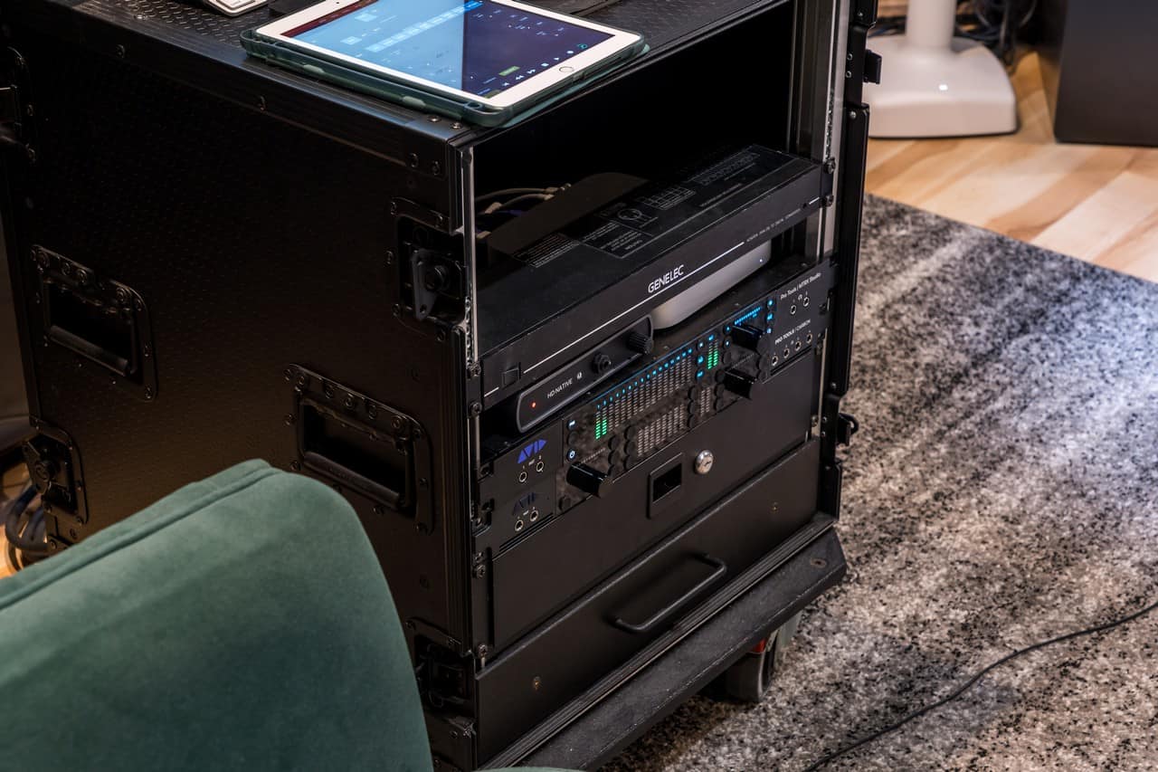 Konkretne modele dobraliśmy tak, aby z jednej strony dać gościom showroomu możliwość posłuchania muzyki w standardowej konfiguracji stereo oraz tak, aby te głośniki były zarazem częścią większego wielokanałowego systemu, np. ATMOSa. Wszystkimi głośnikami, a jest ich ponad 20, możemy zarządzać w łatwy sposób przy pomocy oprogramowania do konfiguracji i kalibracji – GLM Genelec Loudspeaker Manager. Nasza flota w showroomie to – od najmniejszego: 8010A, 8320A, 8330A, 8340, 8350A. Dalej cała rodzina współosiowych The Ones: 8331A, 8341A, 8351B, 8361A, adaptacyjne systemy niskotonowe W371A oraz subwoofery 7350A i 7360A. Dodatkowo można zauważyć 6040R – zestaw przeznaczony szczególnie do słuchania muzyki w domu.