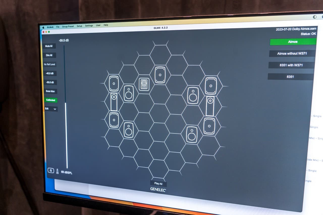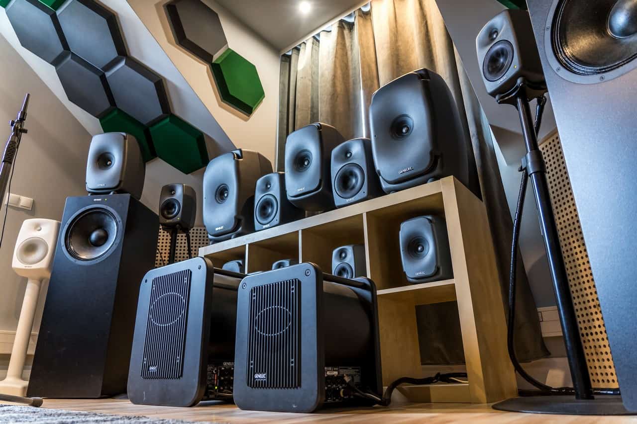 Pomieszczenie posiada profesjonalną adaptacje akustyczną a jakiekolwiek problemy są skutecznie niwelowane przez system kalibracji Genelec GLM.