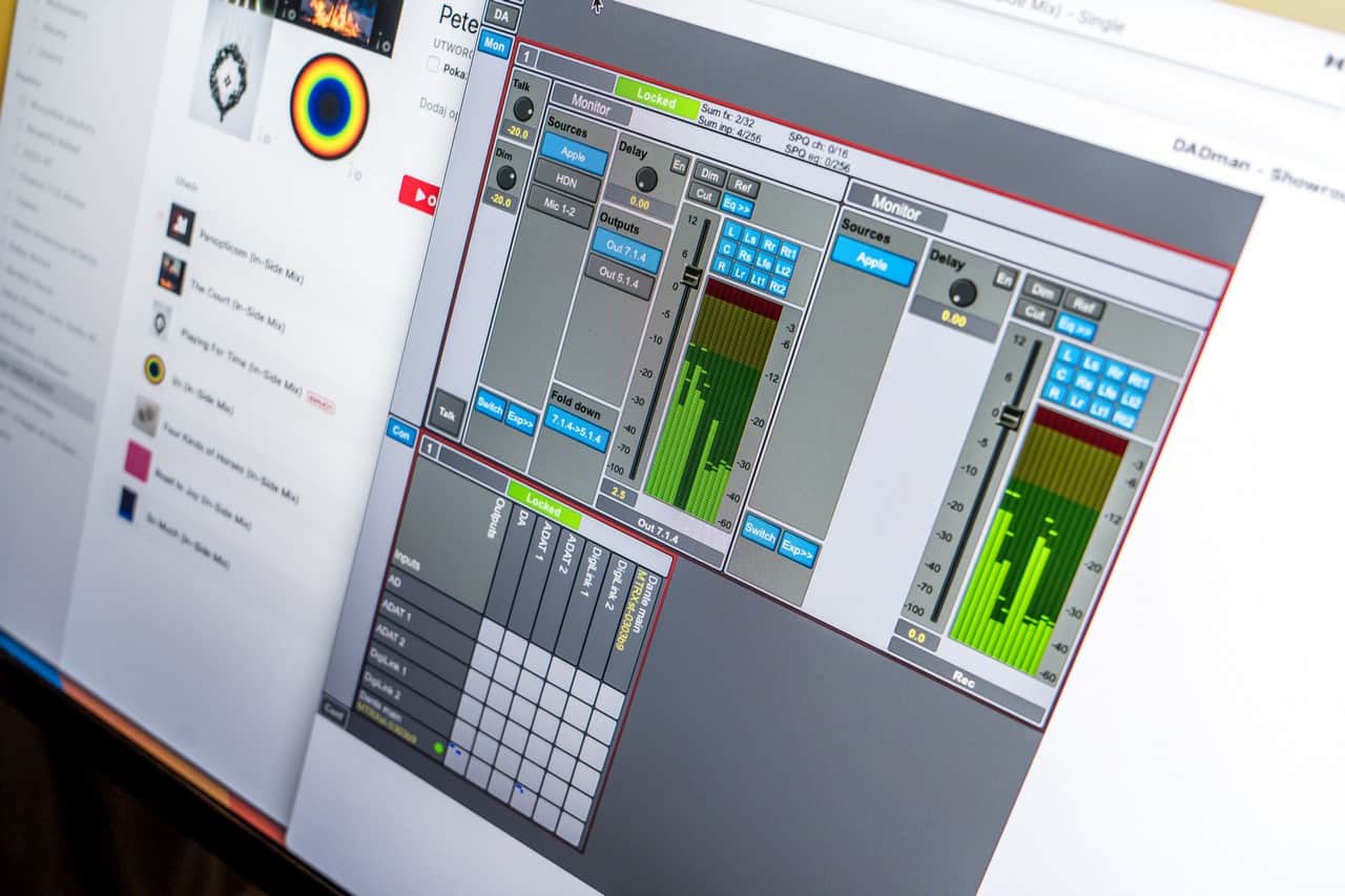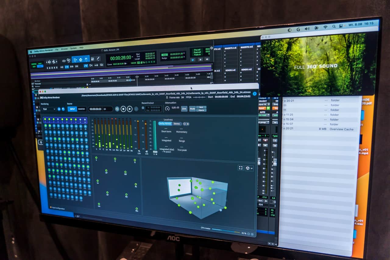 Udało nam się zaprojektować wszechstronną konfigurację – możemy posłuchać źródeł dźwięku w wersji stereofonicznej, konfiguracji 2.1, aż do pełnego ATMOS. Jako źródło dźwięku możemy wykorzystać albo Apple Music albo system Pro Tools HD z sesjami wielokanałowymi kodowanymi przez Dolby Atmos Renderer.