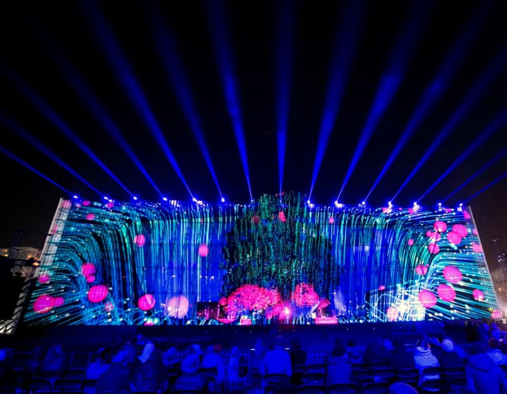 Inauguracje nowych obiektów związanych z działalnością instytucji kultury można podzielić na kilka rodzajów. Pierwszy z nich to sytuacje, kiedy widownia jest zaproszona do wnętrza nowego budynku i tam prezentowana jest nowa przestrzeń. Są też takie inauguracje, gdzie po części oficjalnej cała uwaga skupia się już tylko na bankiecie. Coraz częściej jednak otwarciom nowych obiektów towarzyszy show, w którym główne miejsce zajmuje właśnie sam budynek, stając się naturalną scenografią organizowanego eventu. Tak było również w przypadku produkcji przygotowanej z okazji otwarcia Muzeum POLIN – o jej wielkości może świadczyć chociażby łączna siła strumieni świetlnych ze wszystkich projektorów, która wynosiła 222 000 lumenów! Jeżeli chodzi o stronę artystyczną, na inaugurację Muzeum Historii Żydów Polskich POLIN złożyły się trzy części. Pierwszą z nich był koncert legendarnego nowojorskiego klarnecisty Davida Krakauera, który wystąpił w Warszawie wraz z grupą Ancestral Groove, po tej części na scenie pojawili się aktorzy i studenci Akademii Teatralnej w Warszawie, którzy zaprezentowali spektakl muzyczny „My, Żydzi Polscy” autorstwa Andrzeja Strzeleckiego i Marka Stefankiewicza. W finale projektu wystąpił Tomasz Stańko, który z akompaniamentem zespołu wykonał specjalnie napisaną dla muzeum suitę „Polin”. Jeżeli chodzi o stronę wizualną produkcji, została ona oparta na dwóch osiach: wizualizacjach i oświetleniu. Wizualizacje zostały zrealizowane z pomocą kilku łączących się w spójną całość elementów. Pierwszym z nich była szklana elewacja muzeum o wymiarach 65 × 23 m, która posłużyła za ogromny ekran projekcyjny. Do wyświetlenia na niej obrazu użyto czterech projektorów Barco HDQ-2K40 Flex pracujących z jasnością o wartości 40 000 lumenów. Projektory były zestackowane, zblendowane i ustawione na dwóch wieżach projektorowych o wysokości 6 m każda, zlokalizowanych w odległości 40 m od ekranu. Przez ekipą realizacyjną stanęło nie lada wyzwanie, ponieważ przez szklaną elewację muzeum przenikało światło, odkładając się wewnątrz muzeum i zakrzywiając tym samym geometrię obrazu. Przełożyło się to na konieczność bardzo dokładnego ustawienia projektorów oraz zapewnienia dużej mocy złożonej z pracujących w zestawie czterech projektorów. W końcowym rozrachunku projekcja na takiej właśnie powierzchni przyniosła dodatkowy efekt w postaci niezwykłej głębi wyświetlanych wizualizacji. Animacje wyświetlane na fasadzie budynku były zrealizowane w oparciu o technologię wideo mappingu 3D. Oprócz zaprogramowanych i wcześniej przygotowanych zdarzeń, w trakcie spektaklu wypuszczano również na żywo pewne elementy, które wypełniły drugą część całego show.Centralną część całej scenografii stanowiło drzewo znajdujące się mniej więcej w osi fasady budynku, które stało się dodatkową częścią obrazu. Specjalnie na nie świecił projektor o mocy Barco HDF W26 FLEX o mocy 26 000 lumenów. Oprócz animacji mappingowych wyświetlono za jego pomocą także projekcję interaktywną. Była to rzadko spotykana technika, w której w trakcie granego na żywo koncertu Tomasza Stańki dźwięk trąbki przetwarzany był na grafikę wypuszczaną bezpośrednio na drzewo. Ostatnim elementem, w którym wykorzystano projekcję i projektory dostarczone przez firmę Pro4Media, były dwa ekrany dla publiczności zlokalizowane przy każdej z dwóch scen. Wykorzystano tutaj modele Stumpfl 16:9 393 × 230 cm, a obraz na nie wyświetlały projektory Barco HDX-W18 FLEX o mocy 12 0000 lumenów. Na ekrany trafiały sygnały z realizacji kamerowej. Wszystkimi projekcjami zarządzano za pomocą oprogramowania Watchout v5, a do transmisji sygnałów wykorzystano światłowody DVI. Ilustracje przygotowała firma Good Looking Studio, natomiast wideo mapping – Onlight Studio. Drugim elementem związanym z oprawą wizualną imprezy było światło. Jego projektem oraz realizacją zajął się Jacek Chojczak. Zakres jego pracy można podzielić na kilka elementów. Pierwszy obejmował dwie odmiennie wyglądające, jeżeli chodzi o projekt sceny, konstrukcje. Do ich zbudowania wykorzystano elementy dostarczone przez firmę TSE. Na scenie, gdzie wystąpili aktorzy warszawskiej Akademii Teatralnej, wykorzystano oprawy typu wash Vari-Lite VL500D, PixelPAR-y marki Thomas, druga scena, gdzie swoje koncerty dali David Krakauer i Tomasz Stańko, to przede wszystkim Robe Robin 800 LedWash (61 szt.) oraz sunstripy (w sumie 140 szt.). Zostały one wykorzystane jako element scenografii sceny, ale z ich pomocą realizowano również oświetlenie typu footlight. Do realizacji ekspozycji dla solistów wykorzystano cztery followspoty Robert Juliat.Drugim elementem zainstalowanego na potrzeby otwarcia Muzeum POLIN światła były oprawy świecące na elementy architektoniczne oraz na drzewo. Do tych zadań użyto stu trzydziestu listw PixelLine 1044, które umieszczono w fasadzie. Z pomocą odpowiednich efektów pomogły one w wyświetleniu animacji na budynku. Boki budynku muzeum były oświetlone z pomocą naświetlaczy Griven Kolorado MK3. Dodatkowo użyto także opraw SGM P-5 (w liczbie 35). Na górnej krawędzi fasady budynku zainstalowano także szesnaście opraw ClayPaky Supersharpy, zainstalowanych na konstrukcji Tomcat. Świeciły one w formie rozłożonych w panoramie szpilek oraz oświetlenia drzewa. Jak przyznał Jacek Chojczak, do prezentacji wiązek z tych właśnie opraw nie potrzebne były żadne wytwornice dymu. Jedynymi maszynami wykorzystanymi w tej realizacji były urządzenia MDG Atmospheric zainstalowane na scenach.Oświetlenie zostało zrealizowane z pomocą zaprogramowanej kolejki cue wyzwalanej z konsolety MA Lighting grandMA 2 Full Size. Cały system oświetleniowy dostarczyła firma Transcolor. Oczywiście ostatnim elementem całego show był dźwięk, zarówn
