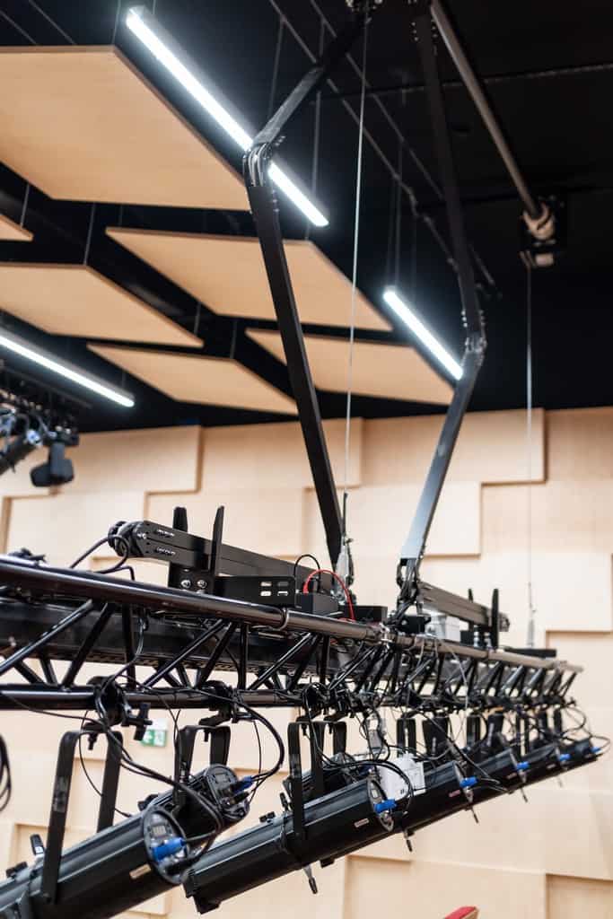 Możliwość malowania wałów w kolorze czarnym, wykorzystanie do prowadzenia instalacji na mostach nowoczesnych pantografów oraz zawieszenie czarnych trawersów spowodowało świetne wkomponowanie się urządzeń w przestrzeń sufitu widoczną dla widzów.