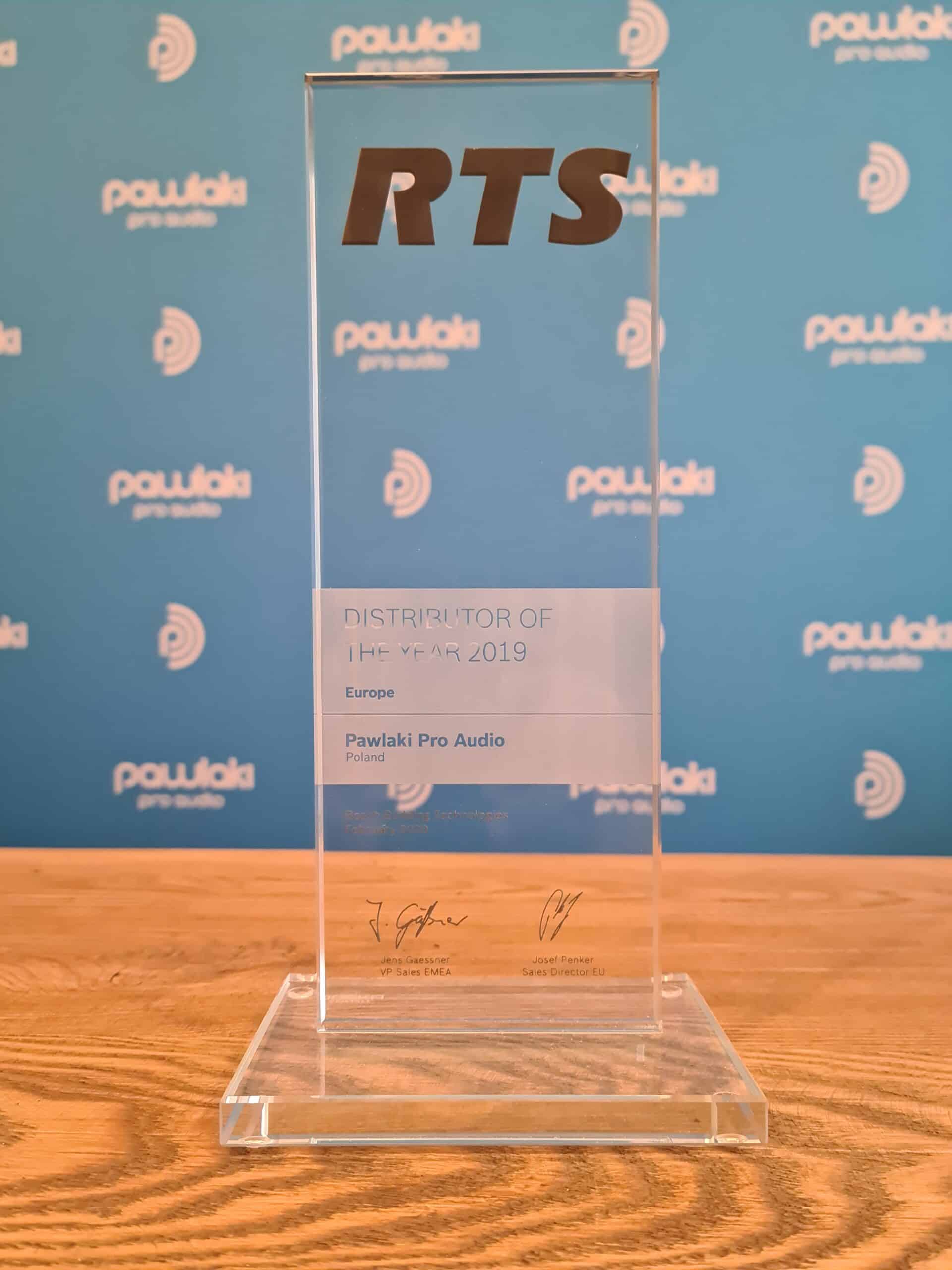 Firma Pawlaki Pro Audio została uhonorowana nagrodą Distributor Of The Year 2019 w rejonie EMEA przez przedstawicieli marki RTS. Pomimo tak wielkiego sukcesu polski dystrybutor nie zwalnia tempa i walczy o nagrodę za rok 2021.