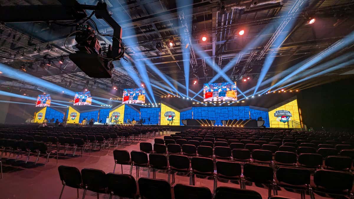 Jednym z kluczowych wyzwań podczas produkcji EUIC 2025 było odpowiednie oświetlenie sceny, zwłaszcza dla uczestników turnieju Pokémon Trading Card Game (TCG). (fot. Floor Knuyt/Fanfinity)