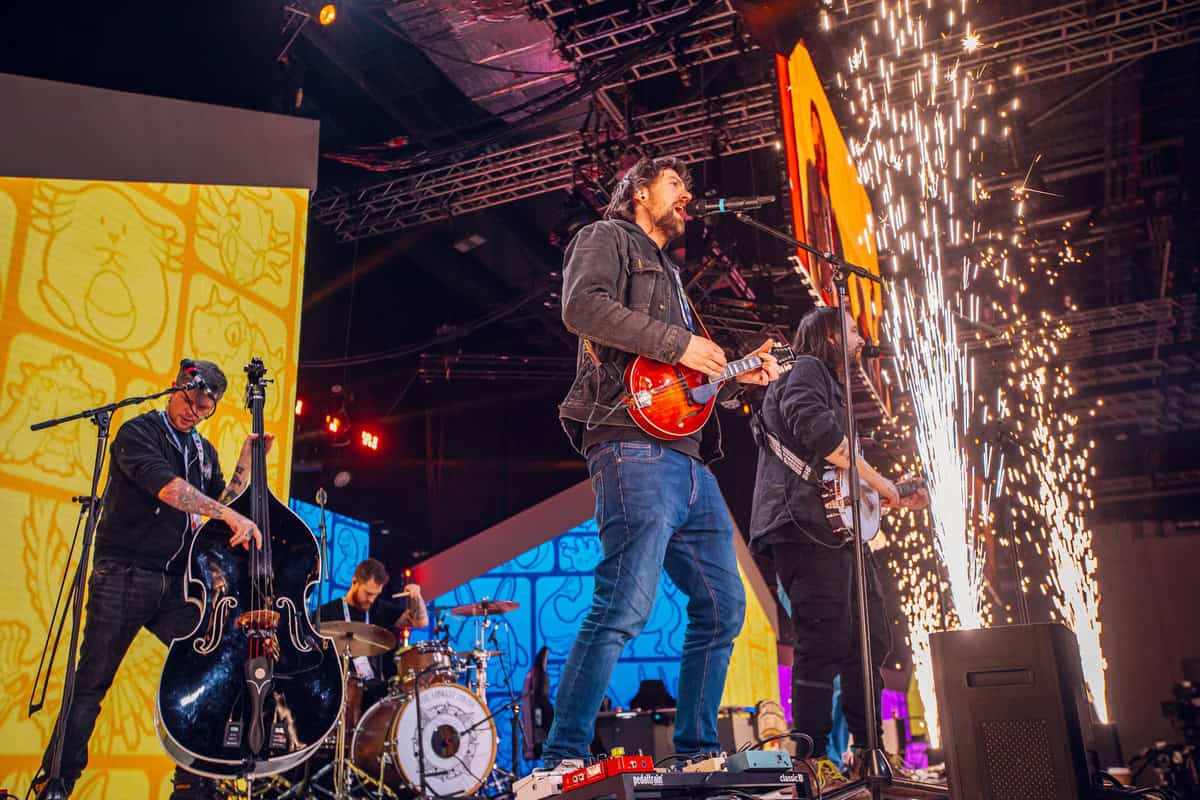 Przyjrzyjmy się zatem stronie technicznej tego przedsięwzięcia. Wspomnieliśmy już o wyzwaniach związanych z oświetleniem. Na bez mała 400 urządzeń złożyły się między innymi takie modele jak: 32 sztuki GLP JDC1, 68 sztuk Martin MAC One, 32 sztuki Robe Mega Pointe, 44 sztuki Ayrton Khamsin-S, 10 sztuk Prolights EclPanel TWC, 32 sztuki Claypaky Tambora Linear 100, 20 sztuk Ayrton Perseo, czy też 75 sztuk Martin MAC Aura PXL, ale także wielu innych. Imponująco wypadła oprawa stworzona w oparciu o multimedia. Ten aspekt przybliża Paweł Pawelec, Dyrektor Techniczny ARAM: “Jedna scena o szerokości 62 metrów i głębokości 10 metrów była podzielona na 4 niezależne, mniejsze sceny. Jako background została użyta dioda M3 Magic w liczbie 1308 modułów. W biurkach zastosowano diodę Unilumin Upad III P2.6, składającą się z 40 modułów. Ta sama dioda została podwieszona nad każdą sceną jako PGM, w rozmiarze 10 na 6 modułów. Dodatkowo po środku hali zamontowano dwa dodatkowe ekrany, by więcej uczestników mogło oglądać wydarzenie. Łączna liczba modułów PGM wyniosła 360.” I jeszcze jedna wypowiedź: Jeśli chodzi o ekrany LED, to podstawowym modelem był YesTech M3 Magic 3,9mm, o łącznej powierzchni 340 m², zaś dodatkowe 104 m² uzyskano za pomocą Unilumin Upad III 2,6 mm, służące jako ekrany PGM dla publiczności. Łączna rozdzielczość wszystkich ekranów na czterech scenach wyniosła 22K, co dobrze oddaje skalę projektu”, jak podsumował Aleh Fralou, realizator multimediów. Dramaturgię budowały także inne elementy, jak scenografia, czy efekty specjalne. Wykonano specjalne nadstawki nad ekranami LED, będące integralną częścią sceny, zaś dla uzyskania spójnego wizualnie efektu użyto wykładzin. W kluczowych momentach widowiska, dla podniesienia emocji wykorzystano 20 sparkularów, które także nadał odpowiedni charakter ceremonii finałowej. Trzeba tu było spełnić wszystkie i bardzo restrykcyjne wymagania bezpieczeństwa samego obiektu. Jednak w odróżnieniu od typowych efektów pirotechnicznych, sparkulary generują zimne iskry, bezpieczne dla otoczenia i nie wymagające ustalania stref buforowych.