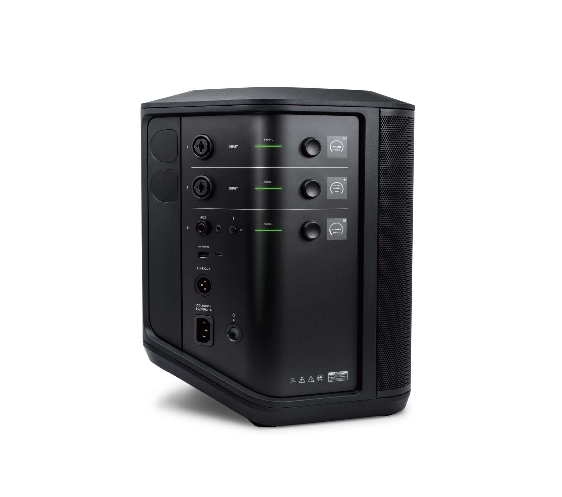 Ten bezprzewodowy system nagłośnieniowy typu all-in-one z wbudowanym trzykanałowym mikserem z punktu widzenia jakości dźwięku jest niewątpliwie urządzeniem z półki pro, jednak do jego obsługi nie jest wymagana specjalistyczna wiedza. Komfort użytkownika dodatkowo podnosi specjalna nowa aplikacja Bose Music, wyposażona w rozbudowaną bibliotekę ustawień ToneMatch, zapewniających najlepsze brzmienie mikrofonów i instrumentów. Zintegrowany mikser oferuje trzy kanały, 1 i 2 służą do podłączania instrumentów oraz mikrofonów, natomiast kanał 3 do przesyłania strumieniowego przez Bluetooth lub wprowadzenia sygnału przez wejście AUX. Główną nowością w Bose S1 Pro+ są wbudowane odbiorniki bezprzewodowe na kanałach 1 i 2, pracujące w paśmie 2,4 GHz. W tym miejscu warto dodać, że producent oferuje dostępne opcjonalnie bezprzewodowe nadajniki radiowe do mikrofonów i instrumentów (wyposażone w złącza XLR lub Jack 1/4″). Ich obsługa jest dziecinnie prosta, nadajniki parują się automatycznie, a zasilanie bateryjne pozwala na ich pracę przez około 4 godziny. W głośniku znajdują się specjalne schowki dla nadajników, które równoczesne służą jako baza do ładowania. Transmitery można również ładować z portu USB lub przy pomocy ładowarki.