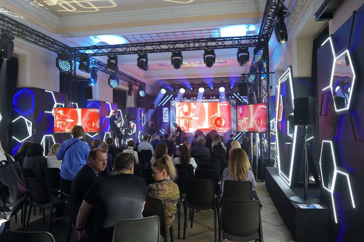 Warto nadmienić, że to właśnie ten projekt zrobił największe wrażenie na uczestnikach i zdobył nagrodę dla najlepszej sceny konferencji. Gratulacje dla wszystkich osób zaangażowanych w jego realizację! Nie mniej efektownie prezentowały się pozostałe sale – duże brawa należą się wszystkim twórcom. Scenę AKADEMIA zaprojektowała firma Brill AV Media, natomiast scenę DYSKUSJE – Visual Europe Group Polska przy udziale Labo Pracownia Scenografii. Za dźwięk w obu przypadkach odpowiadał partner technologiczny – firma Audio Plus, która dostarczyła sprzęt marki L-Acoustics (SYVA/X6/X8/A10/KS21).