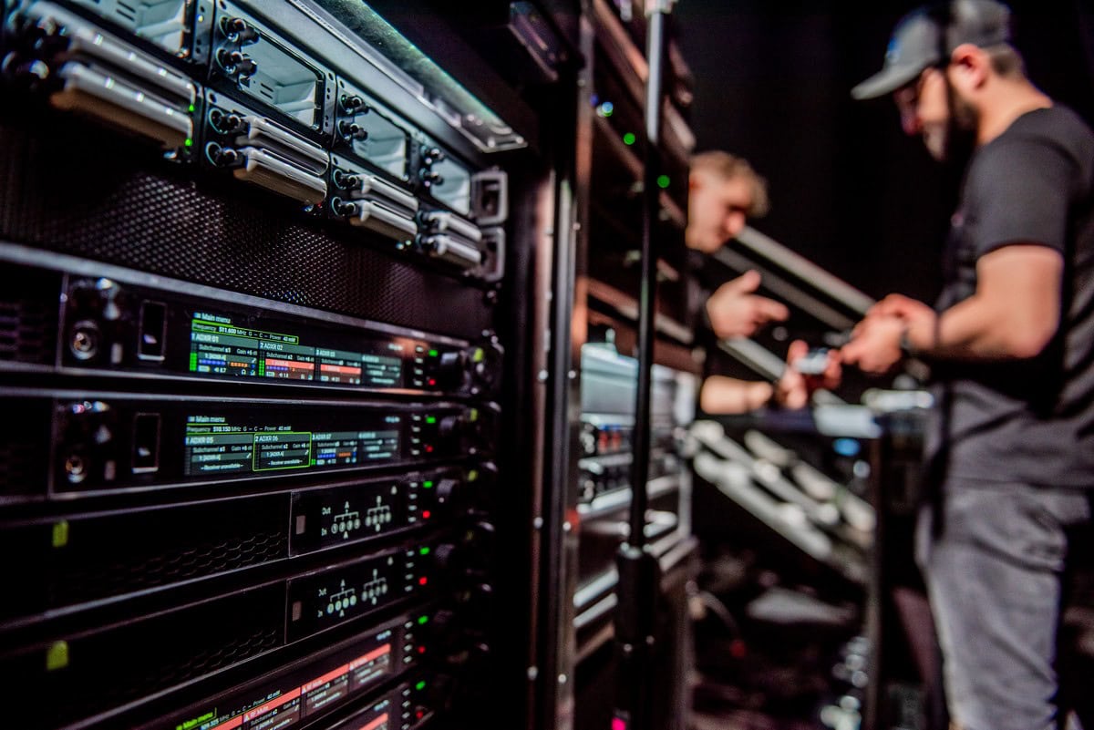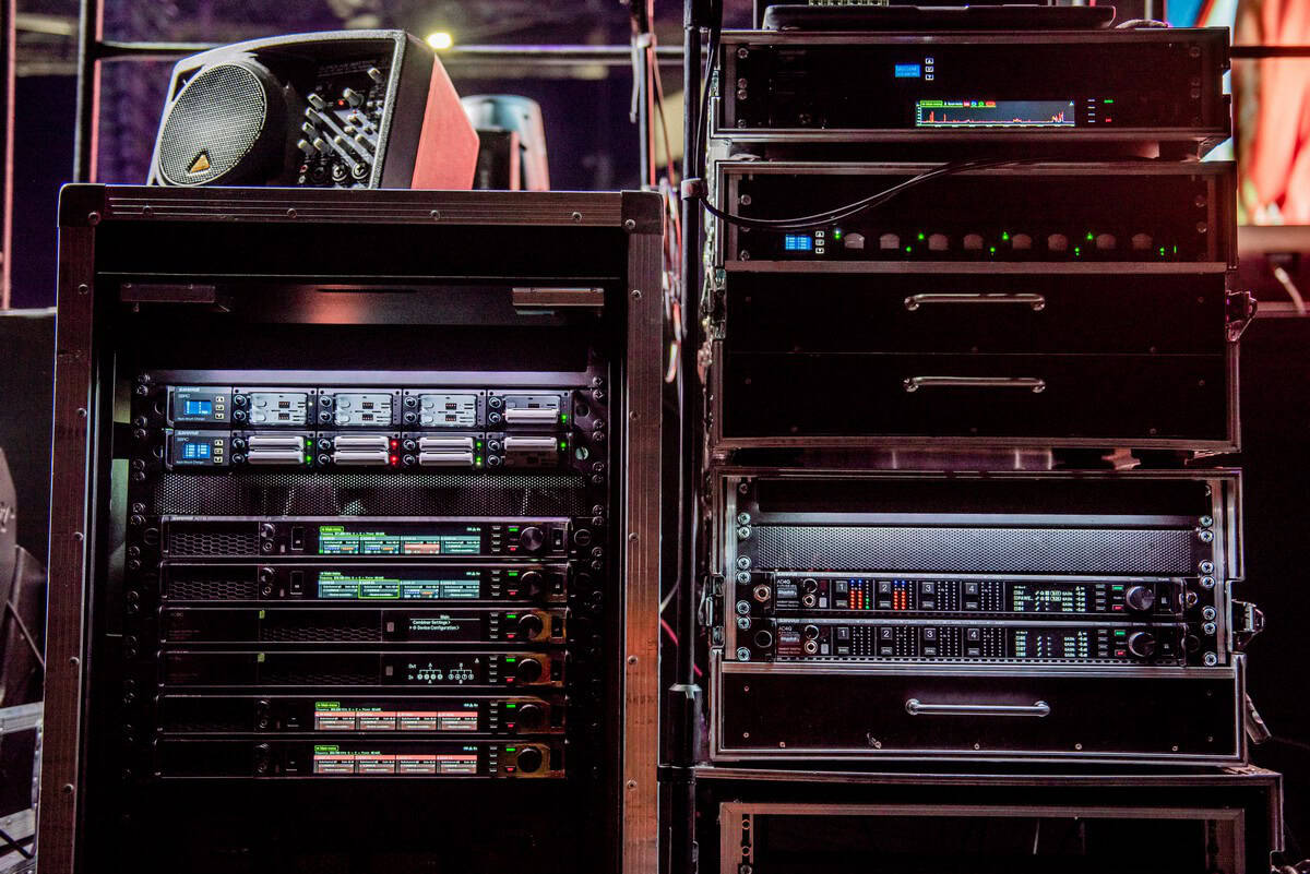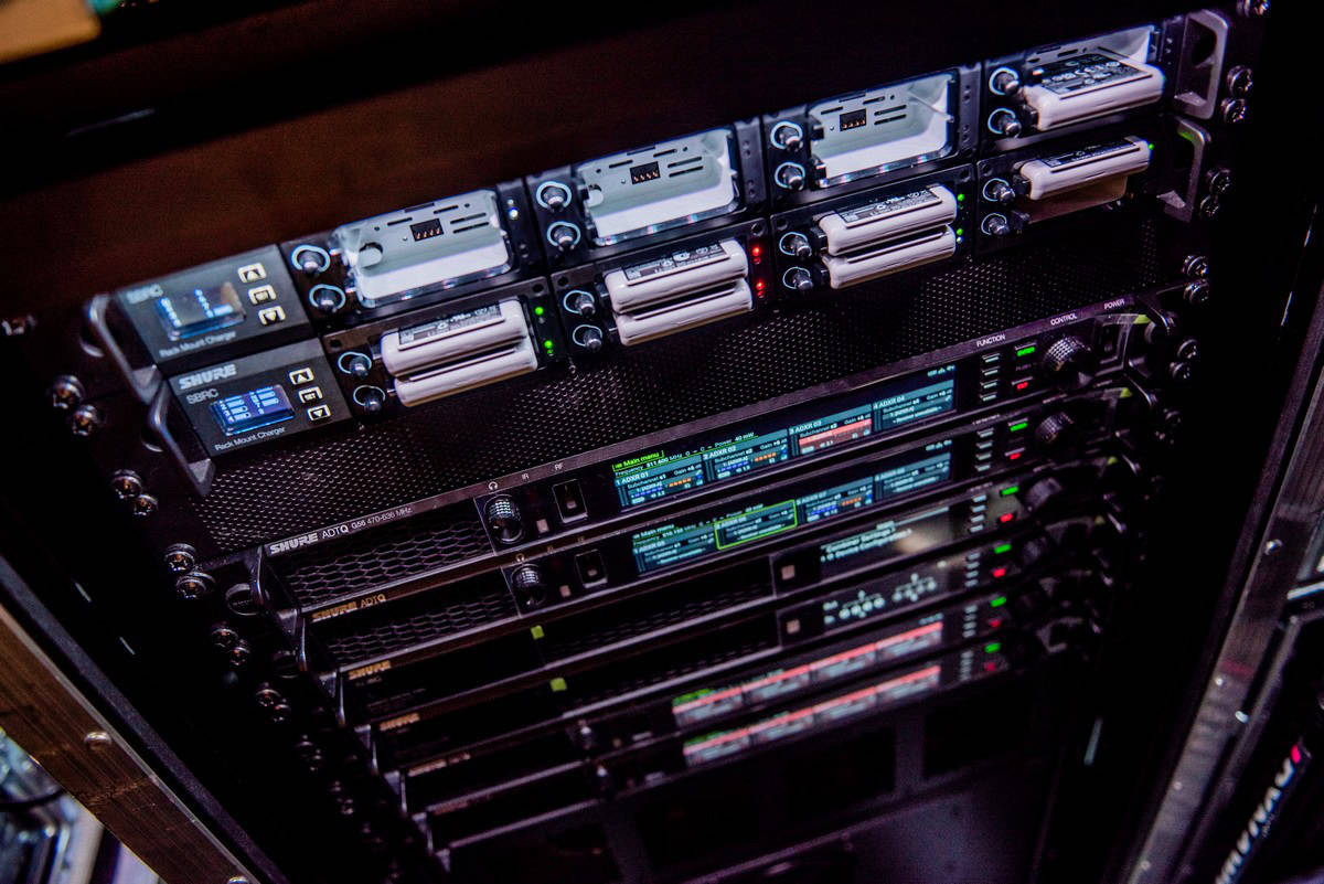 Racki z systemami Axient Digital w trakcie jednej z produkcji, a w nich m.in. nadajniki ADTQ oraz odbiorniki AD4Q. (fot. Shadok)