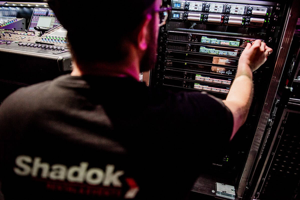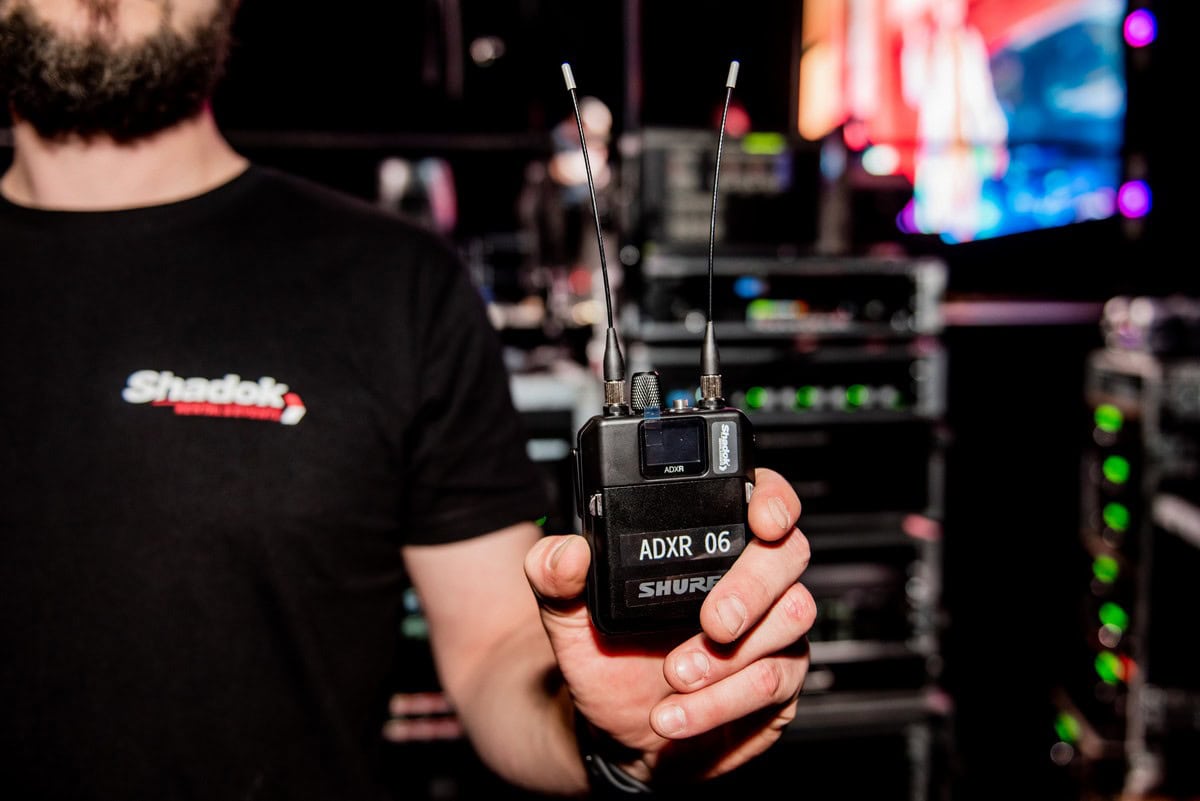 Bazując na twoim doświadczeniu i realizacjach, które robicie, jaka jest dzisiaj „typowa” liczba kanałów bezprzewodowych?To oczywiście zależy od konkretnej produkcji. Zdarzają się nam realizacje w trakcie której jeden rack z czterema kanałami w zupełności wystarcza i korzystamy np. z dwóch nadajników handheald i dwóch bodypacków, a są takie wydarzenia, w trakcie których wykorzystywany jest cały nasz potencjał systemów bezprzewodowych i z mikrofonów bez kabla korzystają zarówno wokaliści, konferansjerzy, prowadzący, obsługa sceny i instrumentaliści. W zakresie bezprzewodów, firma Shadok jest już od wielu lat bardzo mocno związana z marką Shure. Jak wyglądał ten rozwój bazy mikrofonów bezprzewodowych? Jakie systemy zakupiliście jako pierwsze i jakim zestawem dysponujecie dzisiaj? Jesteśmy dosyć młodą firmą na rynku rentalowo-eventowym. Dzięki temu mogliśmy zacząć od razu od serii Axient Digital. Nasz pierwszy zakup to była stacja i nadajniki AD. Dosyć szybko zakupiliśmy również nadajniki ADX, współpracujące z platformą ShowLink. Nabyliśmy również AD600 Axient Digital Spectrum Manager. Kupiliśmy także nadajniki ADX2 z systemem frequency diversity, które można znakomicie wykorzystać na najbardziej wymagające kanały i dla osób, wobec których chcemy mieć pewność, że w żadnym momencie nie stracimy zasięgu. Wraz z rozwojem całej rodziny produktów postanowiliśmy kupić również bezprzewodowe systemy douszne i tutaj wybór padł na najwyższą serię marki Shure PSM 1000, a teraz naszym najnowszym zakupem są systemy IEM Axient Digital PSM.