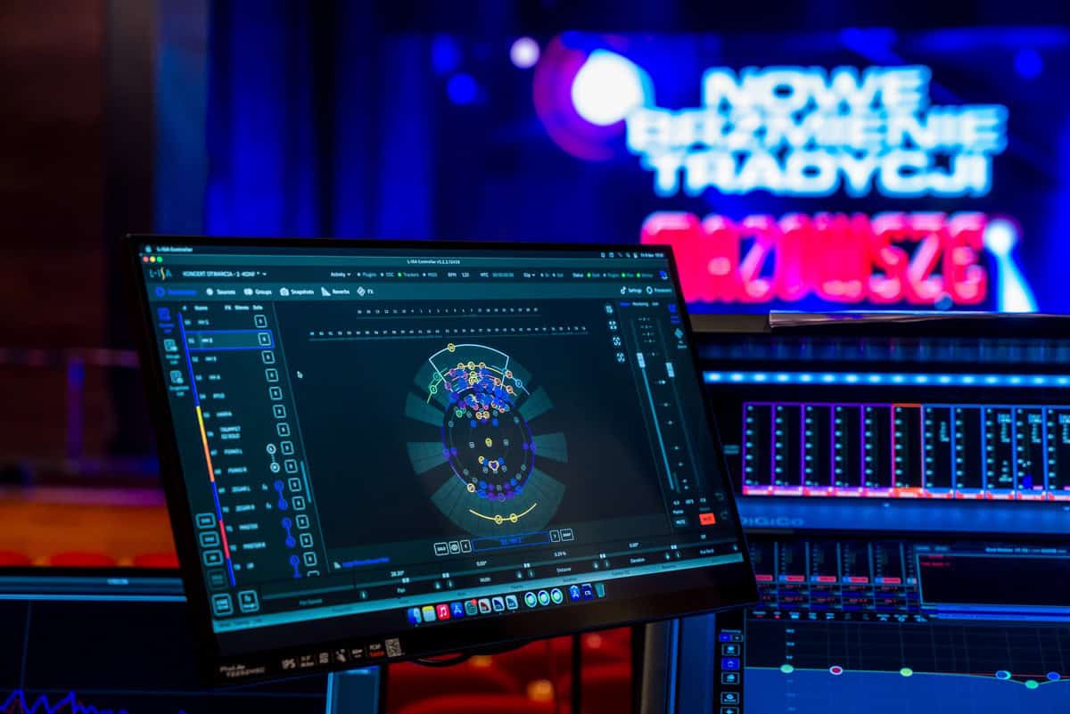 W przypadku systemu immersyjnego gitara i wokal mogą być odtwarzane z innych głośników co powoduje, że nie nastąpi maskowanie częstotliwości a to z kolei oznacza, że być może nie musimy aż tak bardzo korygować brzmienia gitary aby usłyszeć czytelnie wokal. Reżyser dźwięku zespołu „Mazowsze” Piotr Przedbora podczas pierwszych prób w większości powyłączał korektory w kanałach wejściowych czy grupach dzięki temu mógł odwzorować bardziej naturalne brzmienie orkiestry. To tylko kilka przykładów…. Sumowanie wszystkich sygnałów następuje w powietrzu i w naszej głowie. Współpraca z kierownikiem muzycznym jest bardzo ważna ponieważ taka osoba może nagle więcej usłyszeć i np. zmienić aranż. Ciężko jest o tym opowiedzieć zanim się tego nie usłyszy ponieważ „dźwięku nie widać” to nie wszyscy ludzie potrafią go zrozumieć, gdy jednak się usłyszy efekty pracy kreatywnego reżysera dźwięku to efekty są imponujące. Tak było i w tym przypadku, maestro Jacek Boniecki usłyszał znacznie więcej i wpłynął na orkiestrę korygując jej dynamikę. Przewaga DiGiCo jest taka, że posiada natywnie zaawansowaną integrację z L-ISA oraz jest bardzo elastyczna pod katem konfiguracji. Po stworzeniu sesji w konsolecie proces intergacji konsolety z oprogramowaniem L-ISA Controller odbywa się za pomocą jednego kliknięcia. Ponieważ poza technologią immersyjną zastosowałem w instalacji trochę outboardu od Bricasti, Fourier Audio do Waves’a oraz oprogramowanie QLab czy Reaper to DiGiCo umożliwiło sterowanie wszystkim z jednego punktu i tej samej platformy. Realizator dźwięku powinien mieć jedno narzędzie pod ręką, dzięki któremu może sterować wszystkimi istotnymi elementami systemu.
