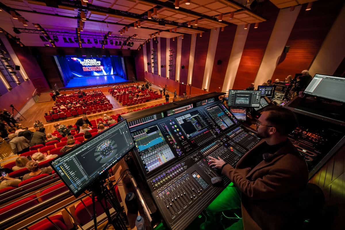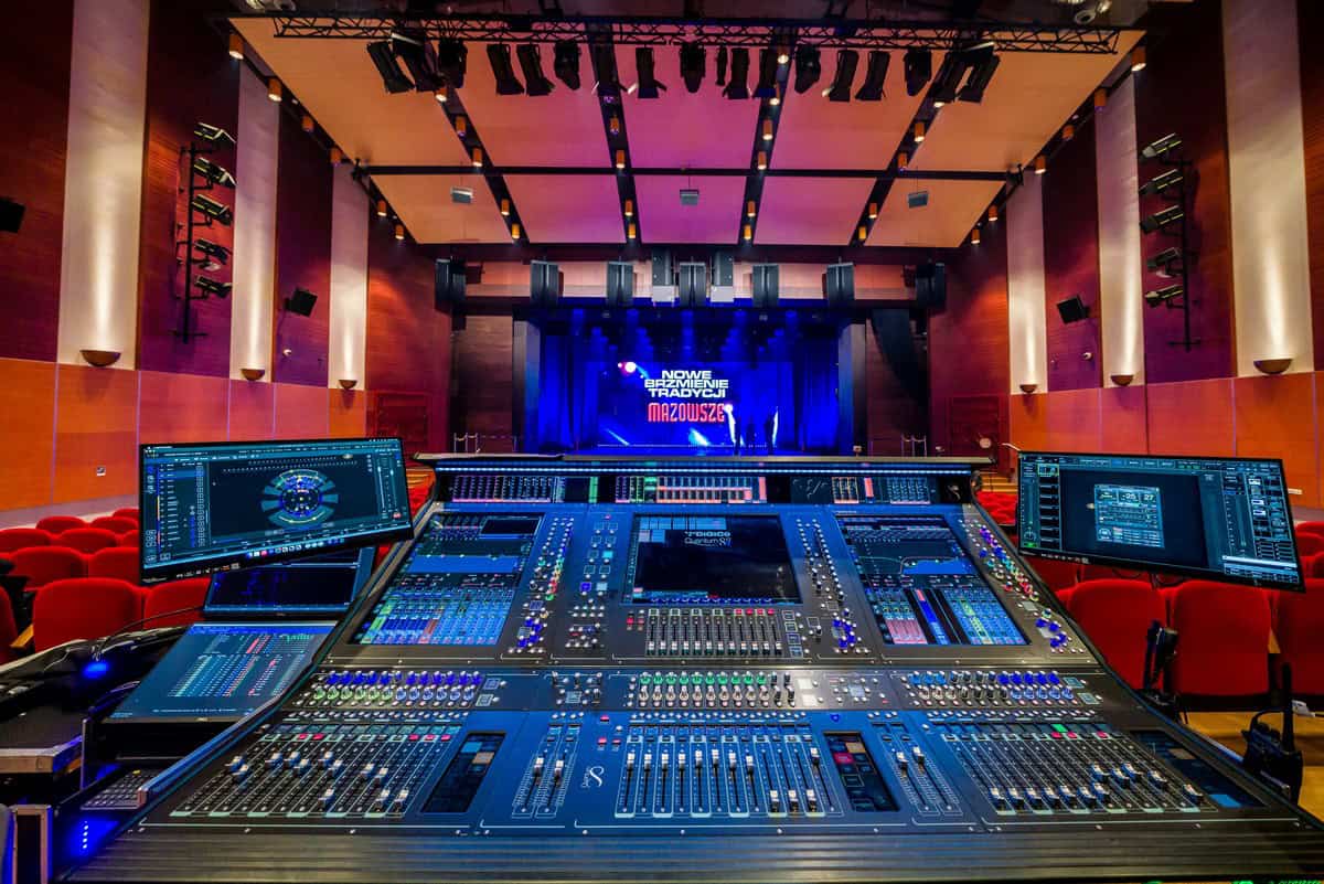 Integralną częścią projektu była także inwestycja w dwie nowoczesne konsolety dźwiękowe DiGiCo Quantum 852, dostarczone przez firmę Polsound. Są to pierwsze takie urządzenia w Polsce, dodatkowo wyposażone w oprogramowanie teatralne. Konsolety zostały zainstalowane na stanowiskach FOH i monitorowym, co pozwala na pełną kontrolę nad dźwiękiem zarówno z perspektywy publiczności, jak i artystów na scenie. Quantum 852 to jedno z najbardziej zaawansowanych rozwiązań w katalogu brytyjskiej marki, którego pojawienie się w „Mazowszu” umożliwiło uzyskanie zupełnie nowego poziomu realizacji dźwięku. Model ten charakteryzuje się wysoką mocą obliczeniową, zaawansowanymi funkcjami przetwarzania oraz dużą liczbą wejść i wyjść, co jest niezbędne przy realizacji dźwięku na żywo w instytucji tej klasy.